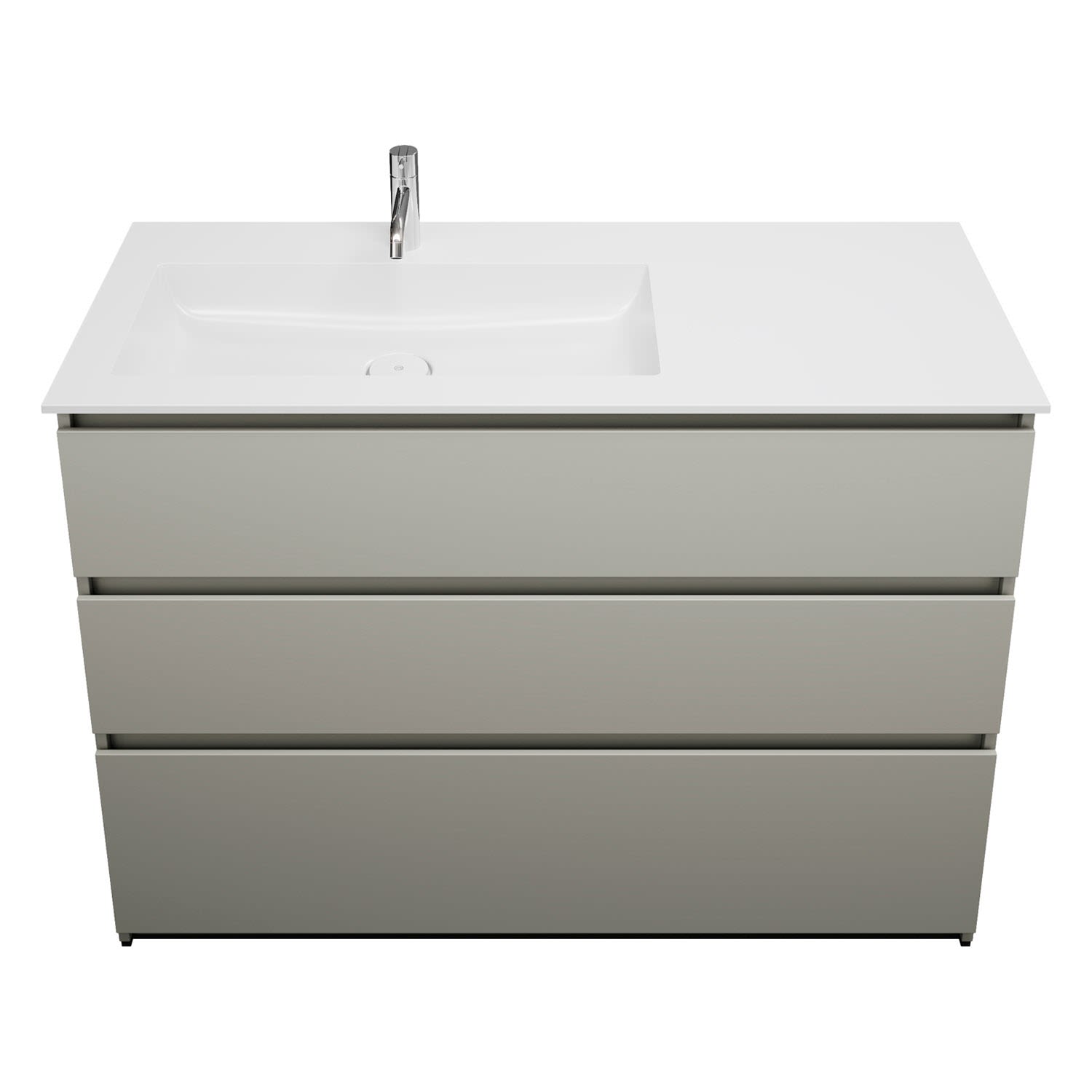 burgbad Lin20 Waschtischunterschrank mit Mineralguss-Waschtisch 122 cm, 3 Auszüge, links