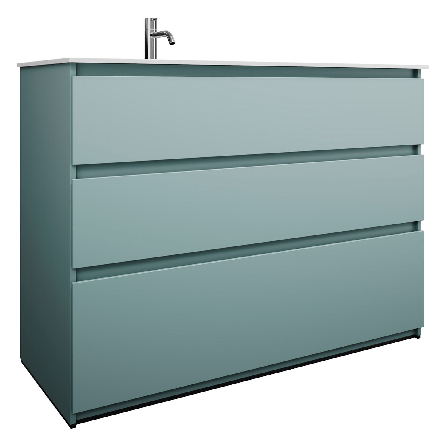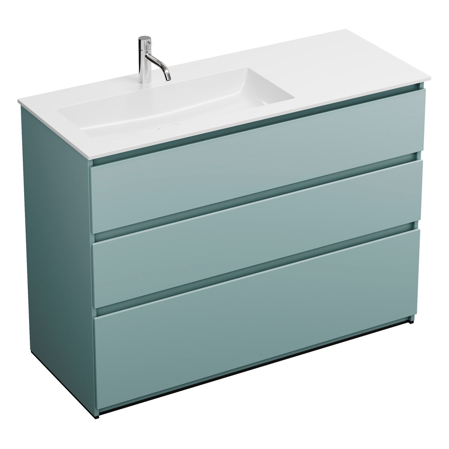 burgbad Lin20 Waschtischunterschrank mit Mineralguss-Waschtisch 122 cm, 3 Auszüge, links