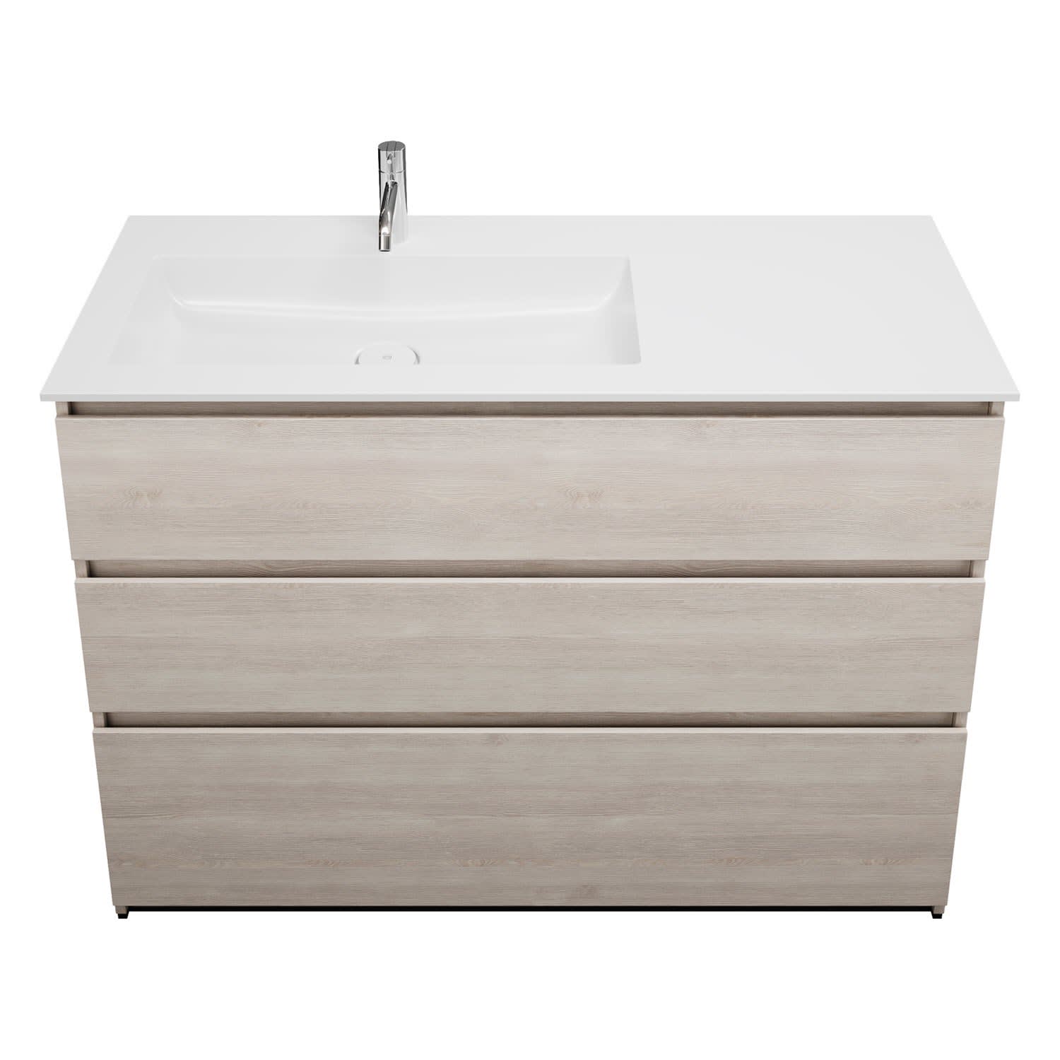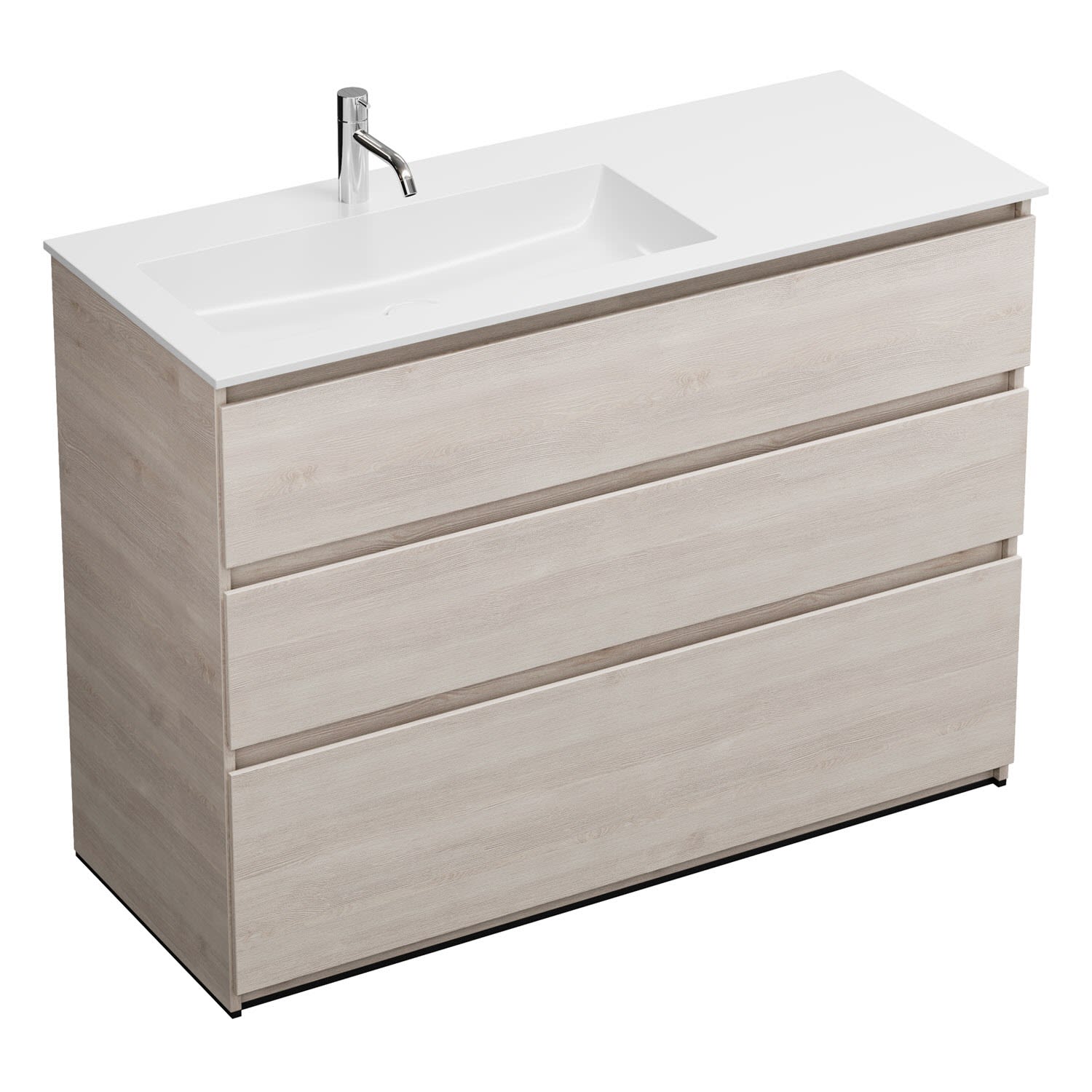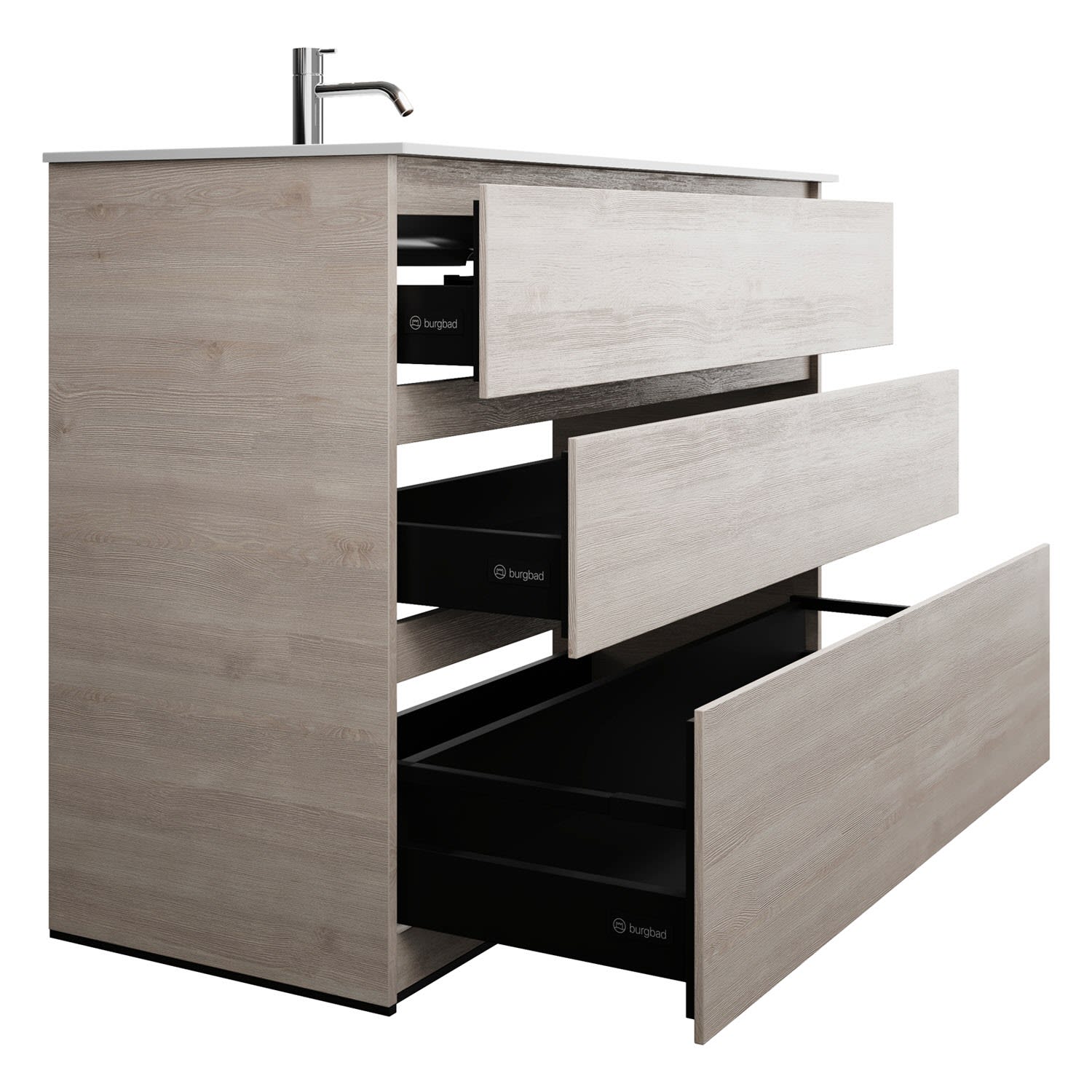 burgbad Lin20 Waschtischunterschrank mit Mineralguss-Waschtisch 122 cm, 3 Auszüge, links