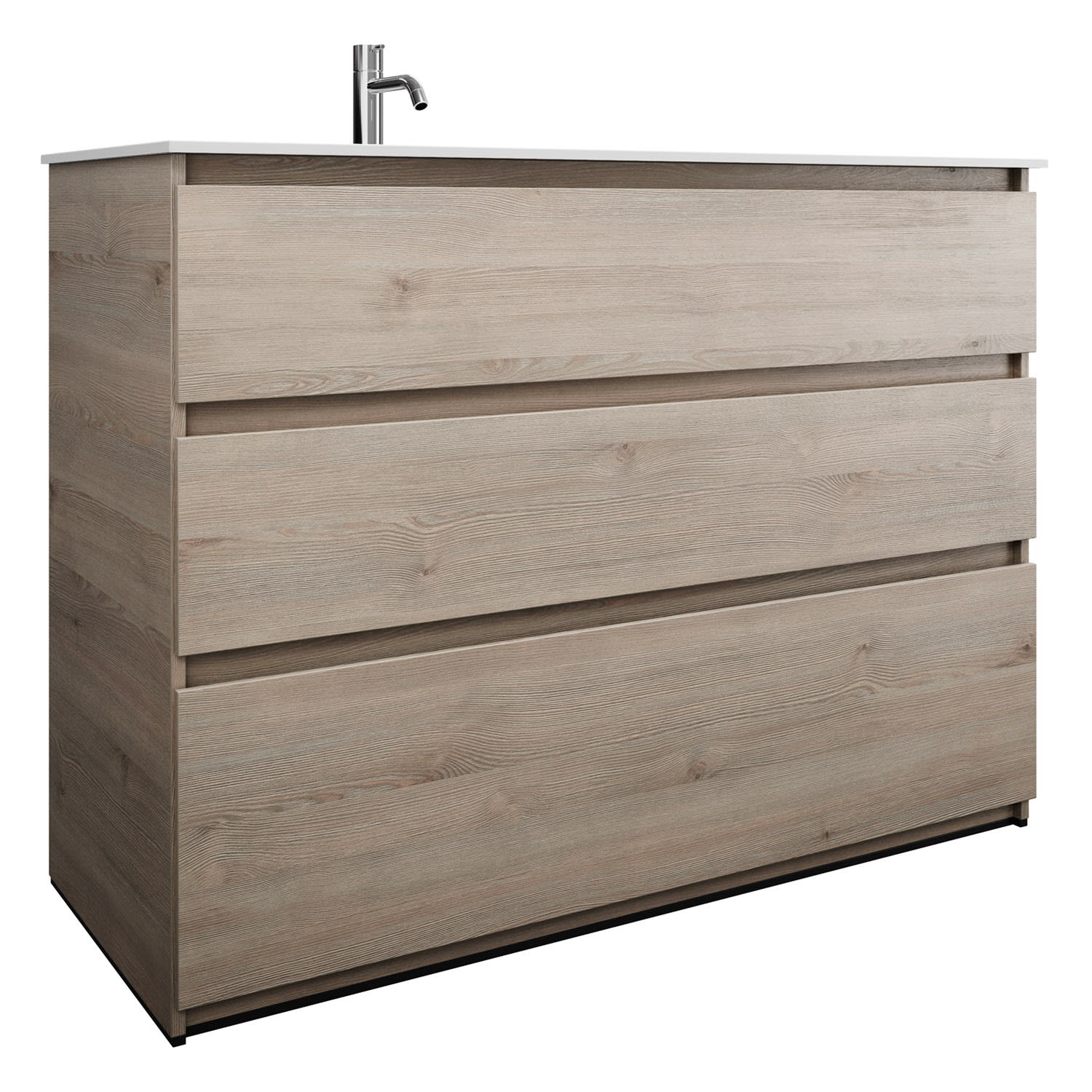 burgbad Lin20 Waschtischunterschrank mit Mineralguss-Waschtisch 122 cm, 3 Auszüge, links