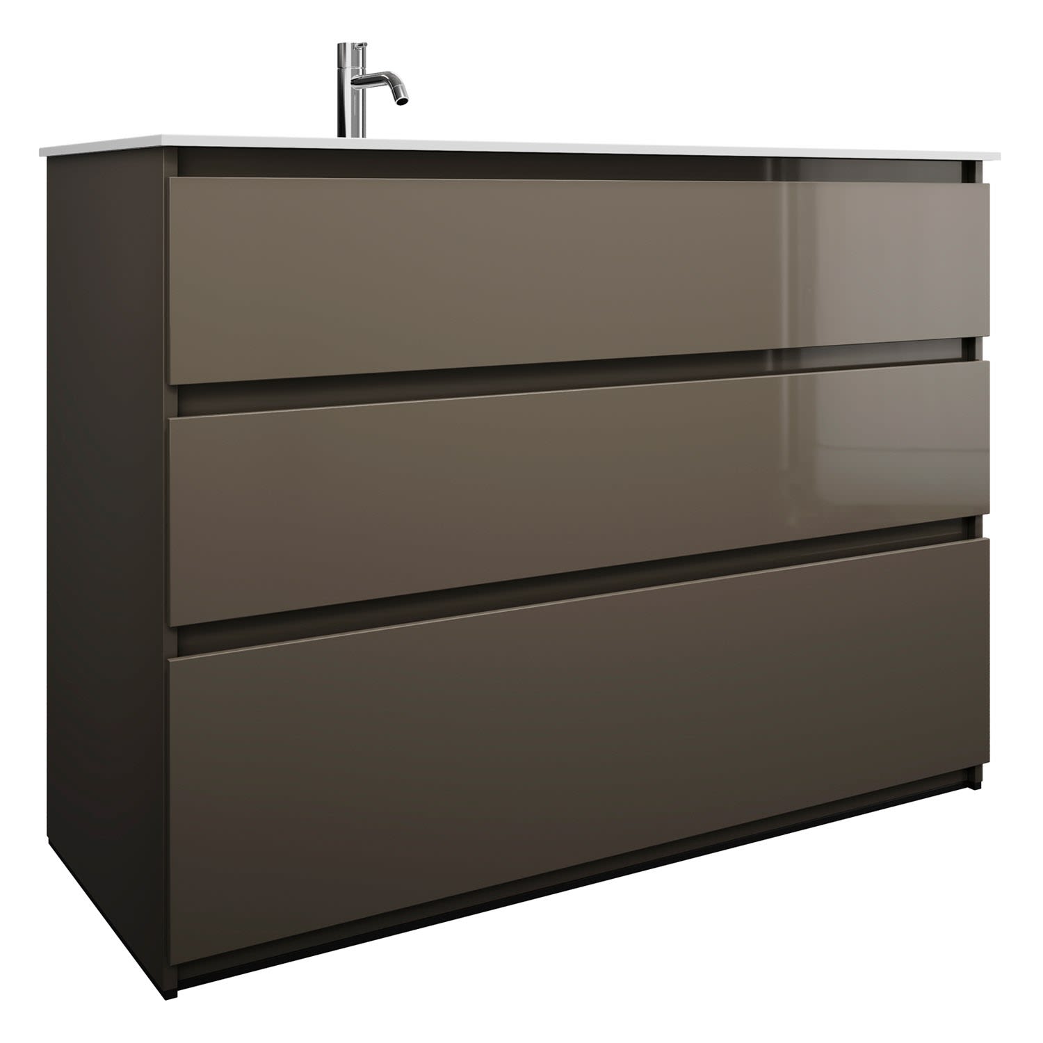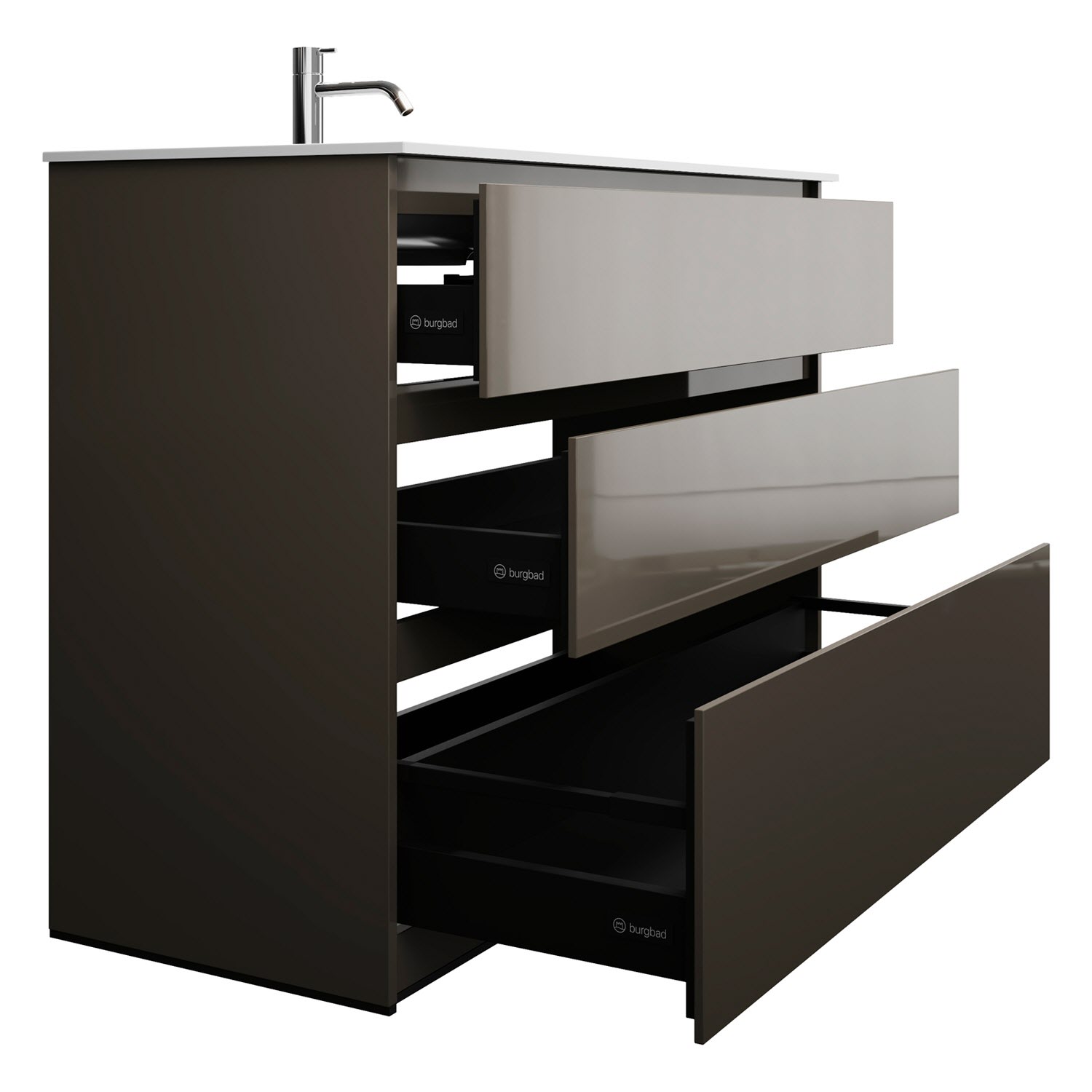 burgbad Lin20 Waschtischunterschrank mit Mineralguss-Waschtisch 122 cm, 3 Auszüge, links