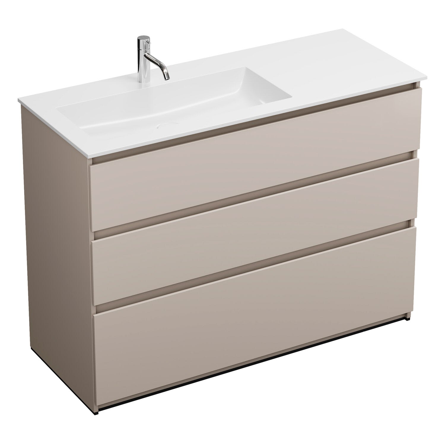 burgbad Lin20 Waschtischunterschrank mit Mineralguss-Waschtisch 122 cm, 3 Auszüge, links