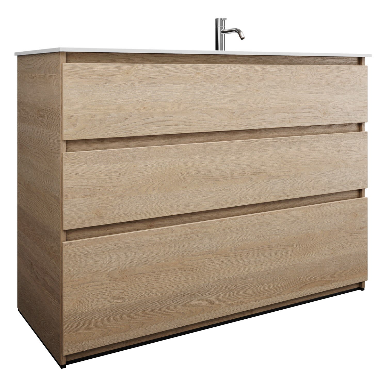 burgbad Lin20 Waschtischunterschrank mit Mineralguss-Waschtisch 122 cm, 3 Auszüge, rechts