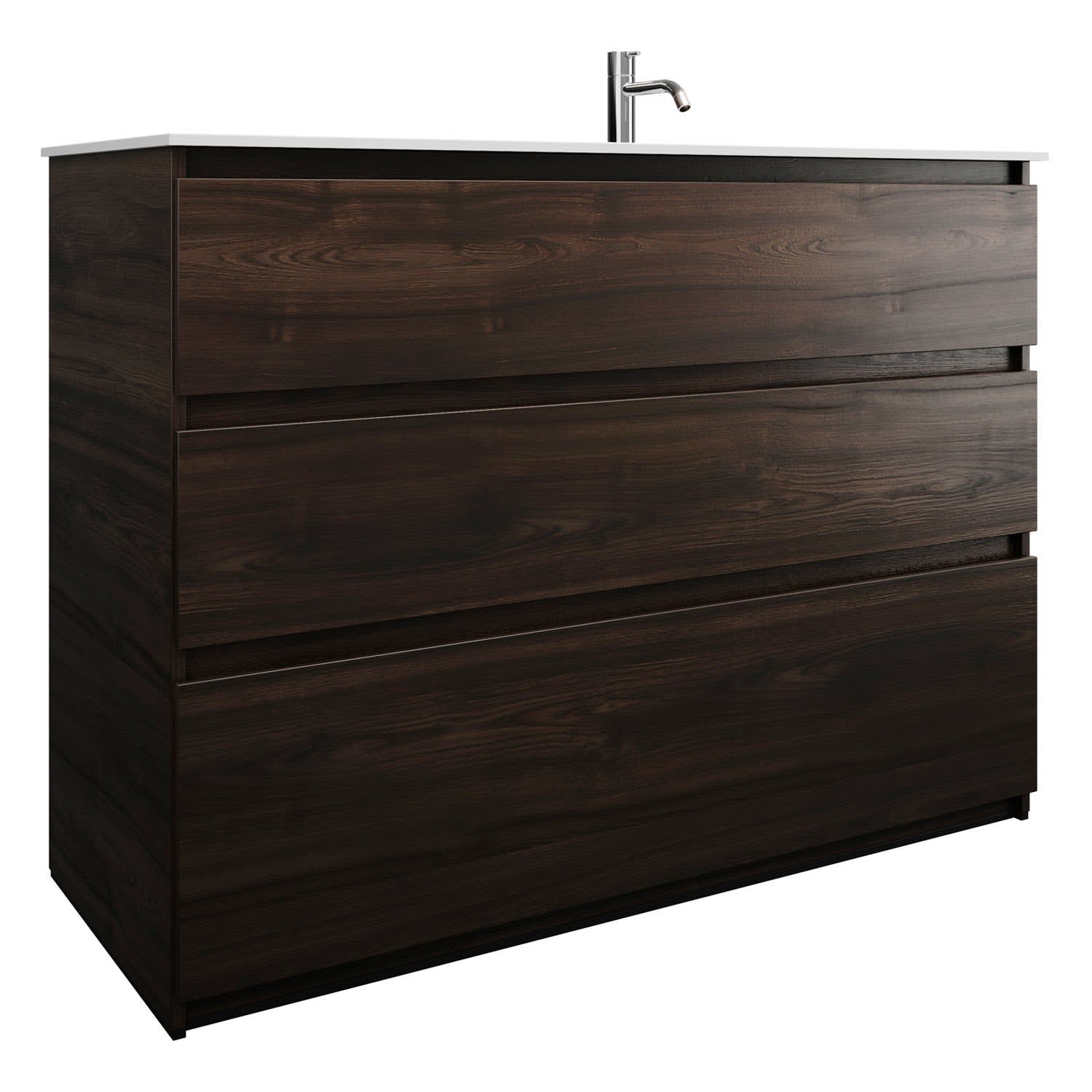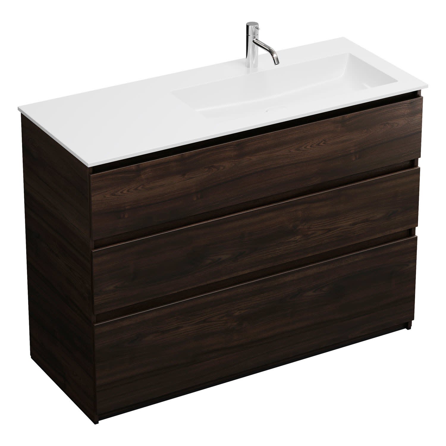 burgbad Lin20 Waschtischunterschrank mit Mineralguss-Waschtisch 122 cm, 3 Auszüge, rechts