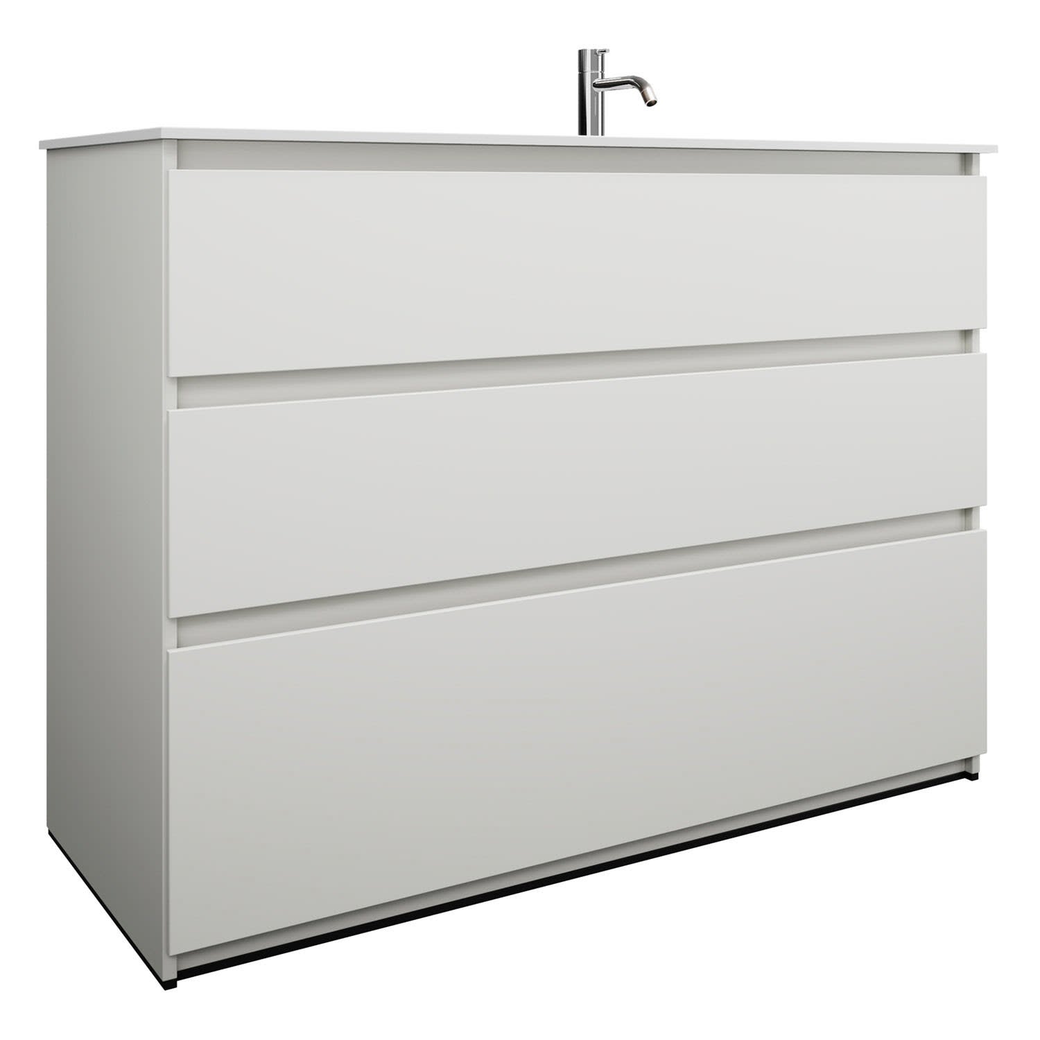 burgbad Lin20 Waschtischunterschrank mit Mineralguss-Waschtisch 122 cm, 3 Auszüge, rechts