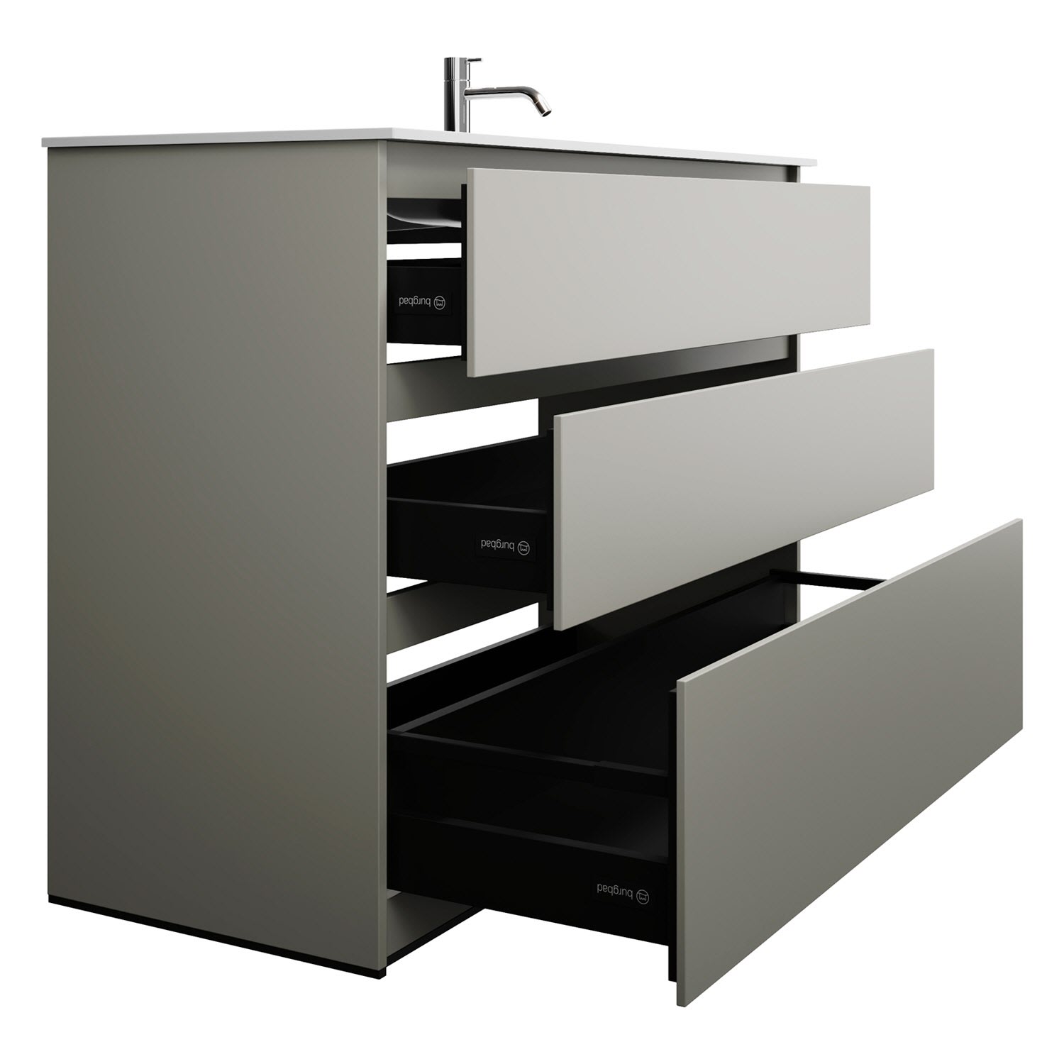 burgbad Lin20 Waschtischunterschrank mit Mineralguss-Waschtisch 122 cm, 3 Auszüge, rechts