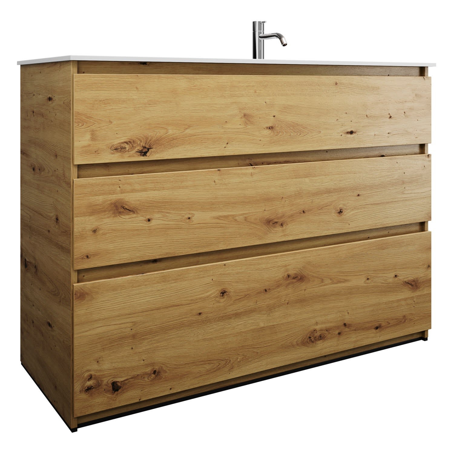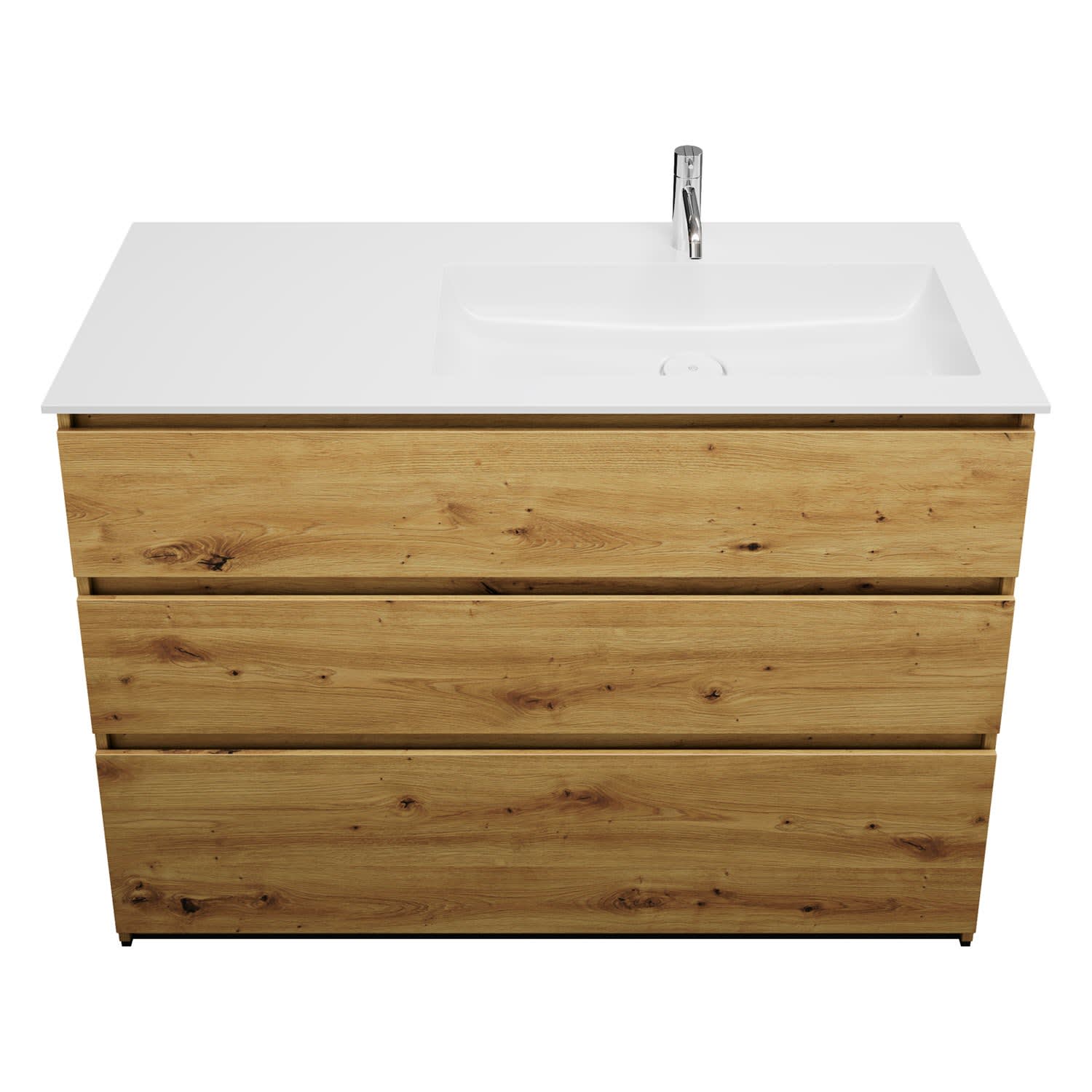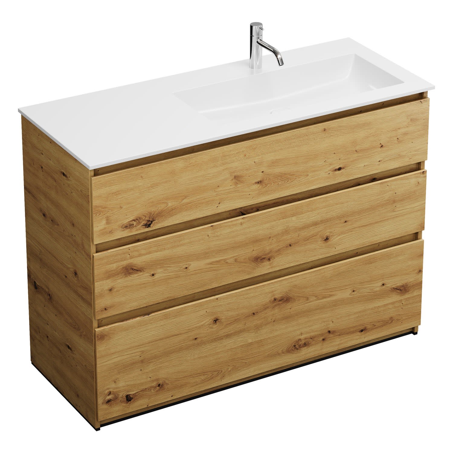 burgbad Lin20 Waschtischunterschrank mit Mineralguss-Waschtisch 122 cm, 3 Auszüge, rechts