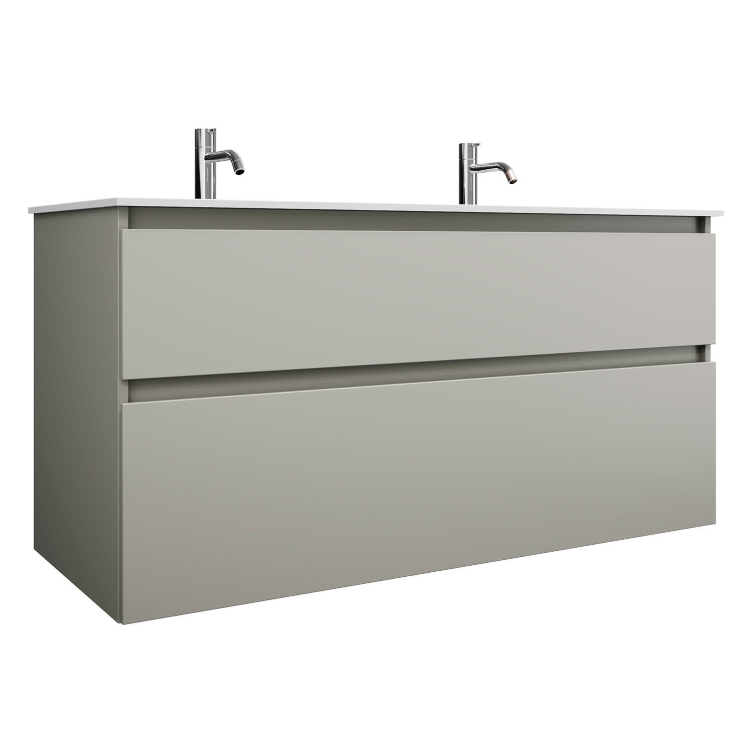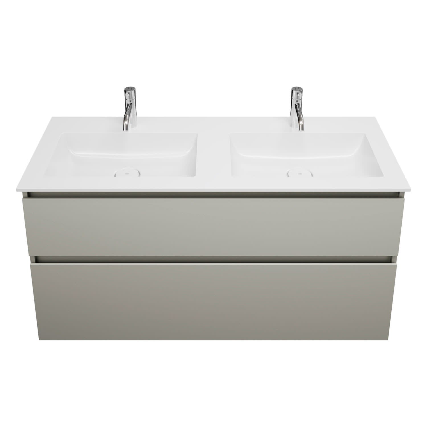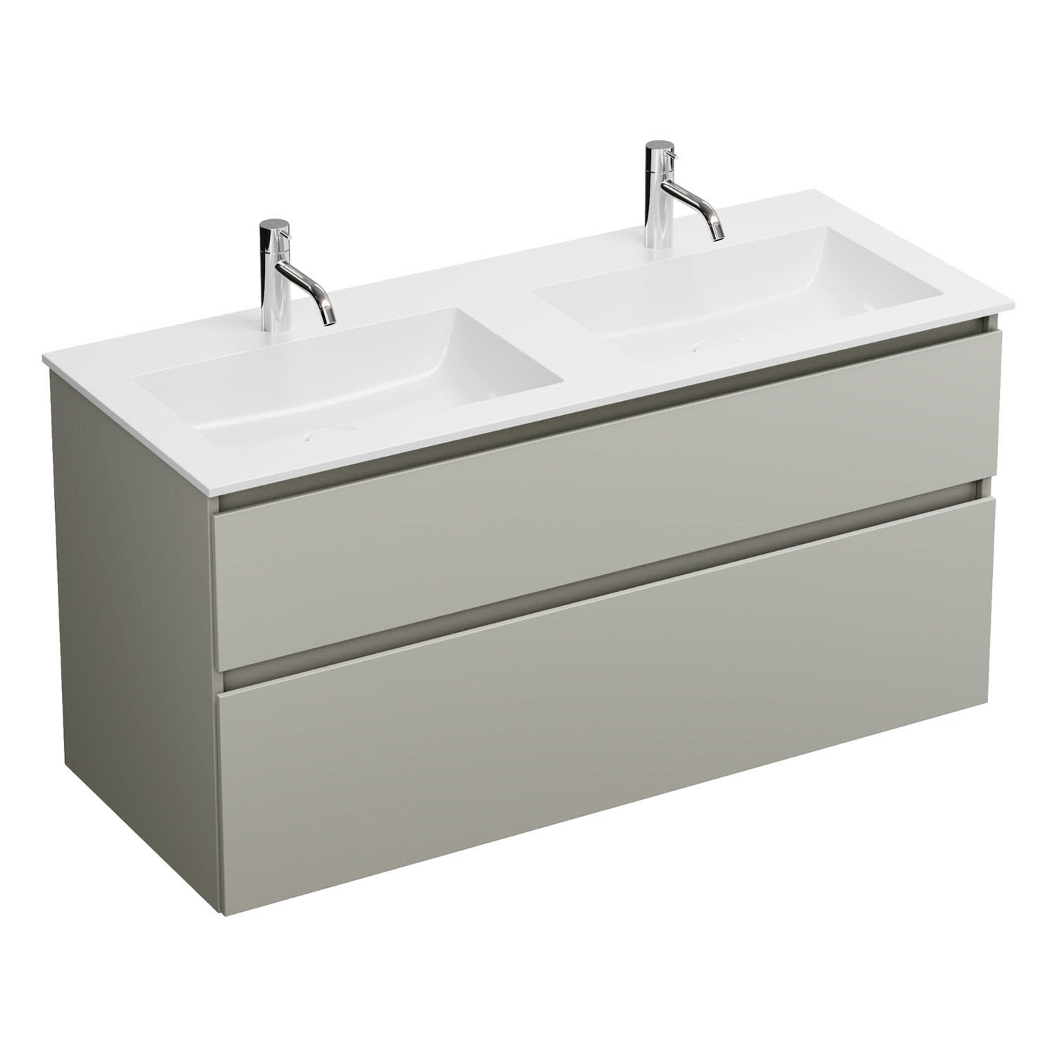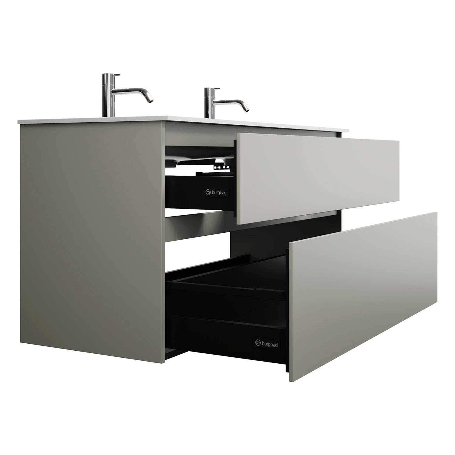 burgbad Lin20 Waschtischunterschrank mit Mineralguss-Doppelwaschtisch 122 cm, 2 Auszüge, links und rechts