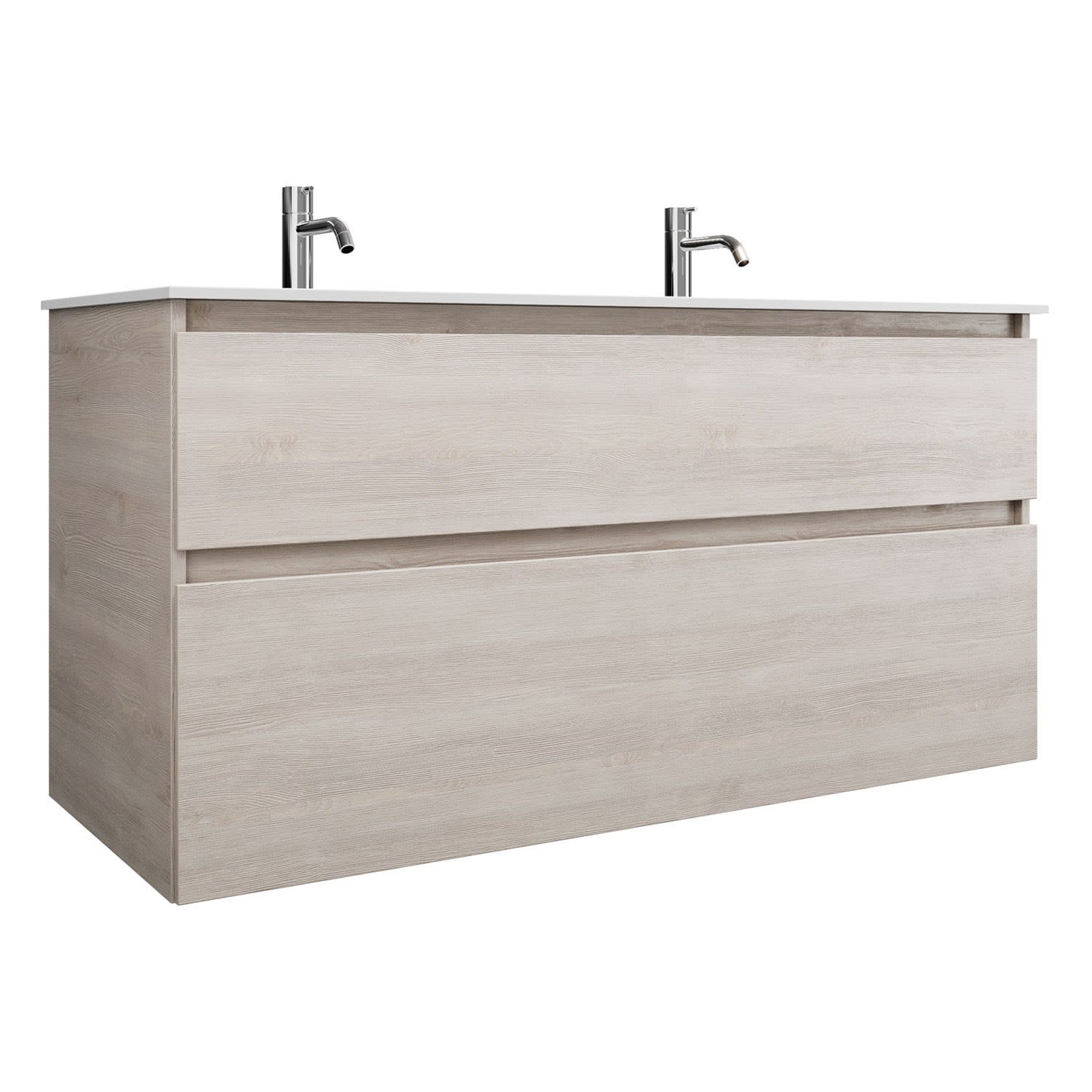 burgbad Lin20 Waschtischunterschrank mit Mineralguss-Doppelwaschtisch 122 cm, 2 Auszüge, links und rechts
