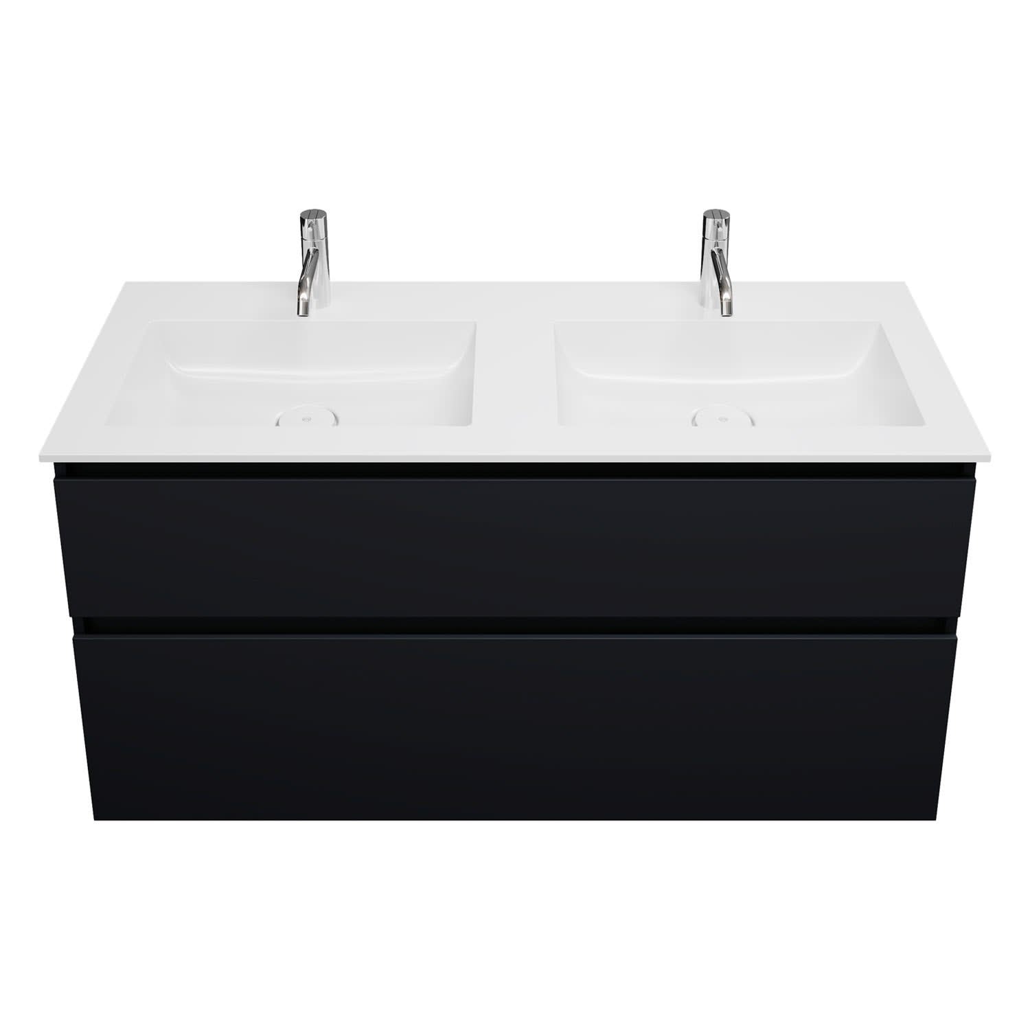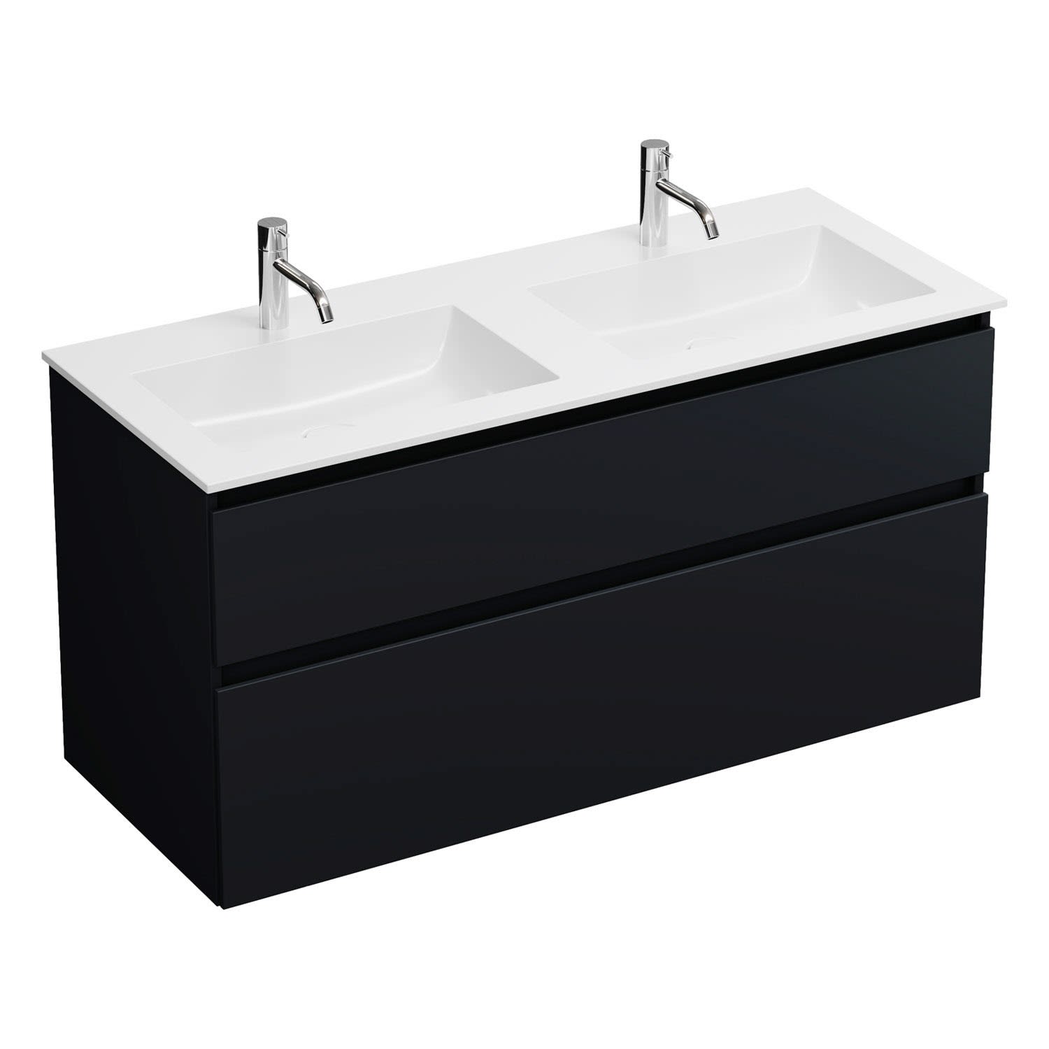 burgbad Lin20 Waschtischunterschrank mit Mineralguss-Doppelwaschtisch 122 cm, 2 Auszüge, links und rechts