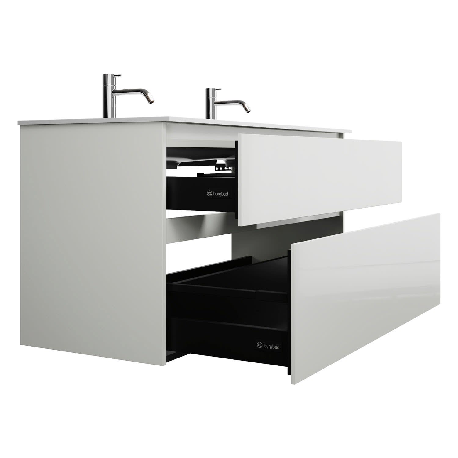 burgbad Lin20 Waschtischunterschrank mit Mineralguss-Doppelwaschtisch 122 cm, 2 Auszüge, links und rechts
