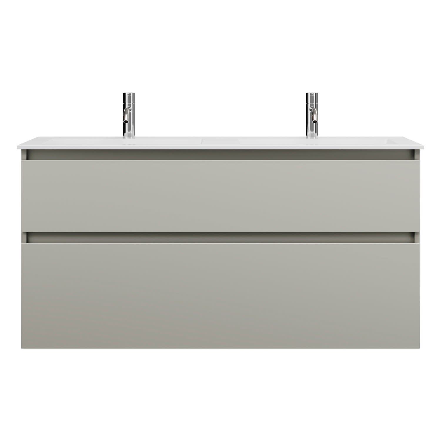 burgbad Lin20 Waschtischunterschrank mit Mineralguss-Doppelwaschtisch 122 cm, 2 Auszüge, links und rechts