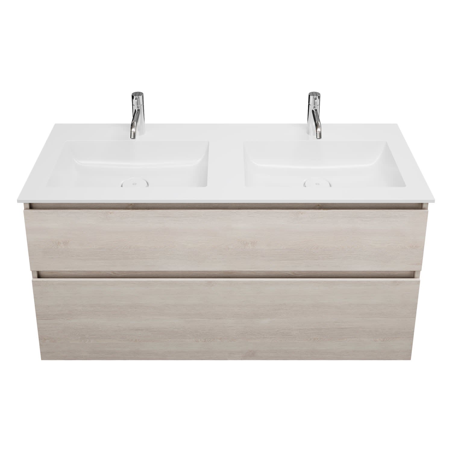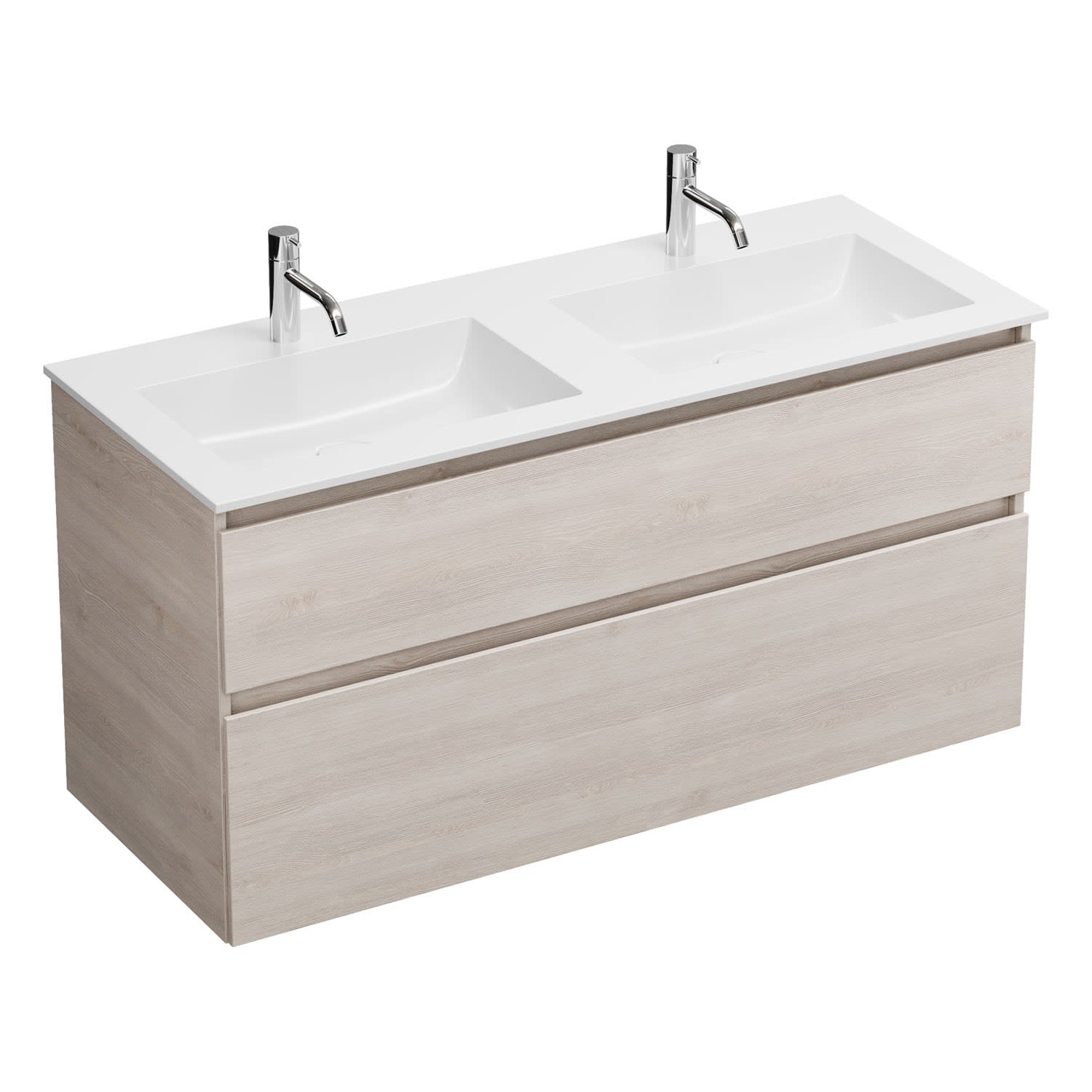 burgbad Lin20 Waschtischunterschrank mit Mineralguss-Doppelwaschtisch 122 cm, 2 Auszüge, links und rechts