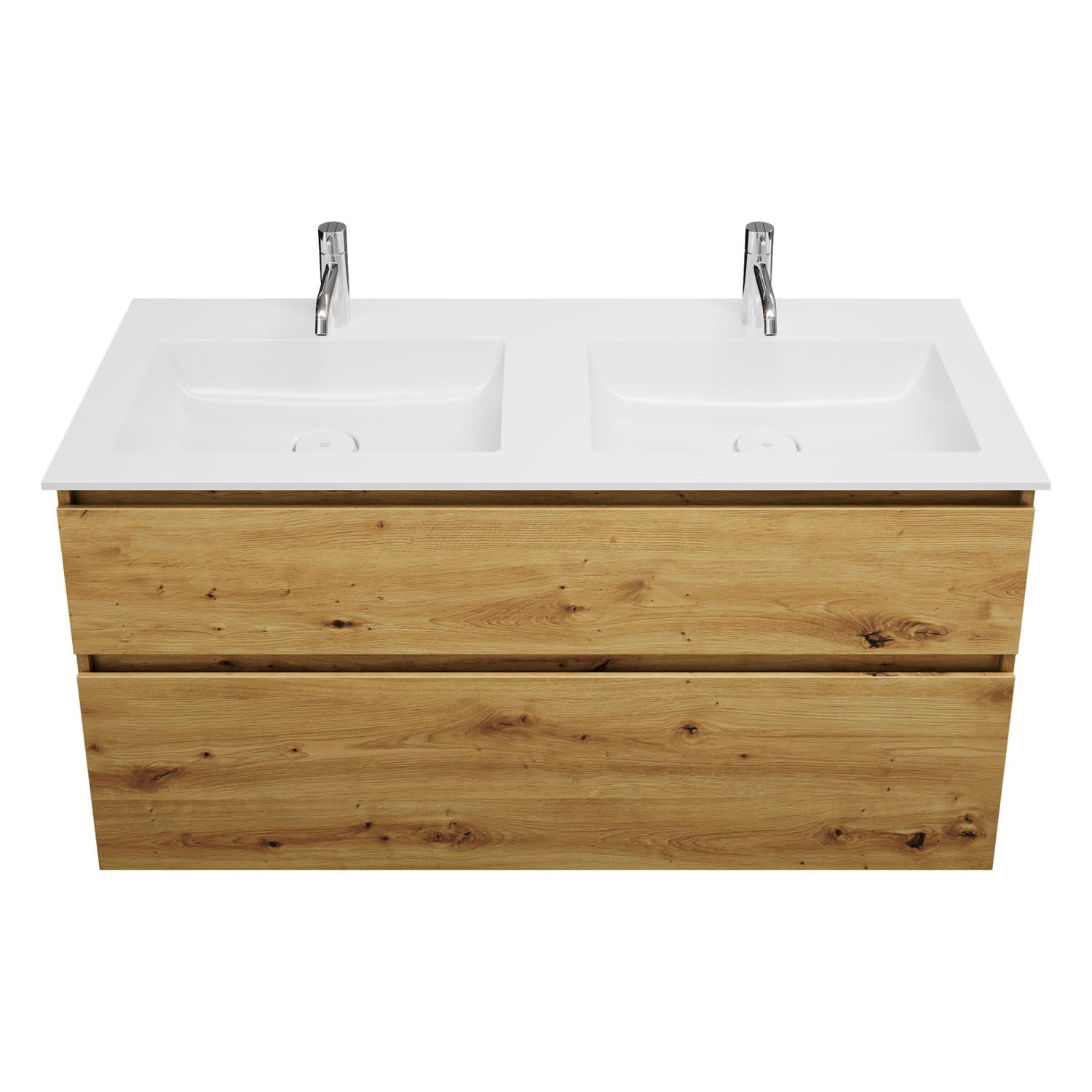 burgbad Lin20 Waschtischunterschrank mit Mineralguss-Doppelwaschtisch 122 cm, 2 Auszüge, links und rechts