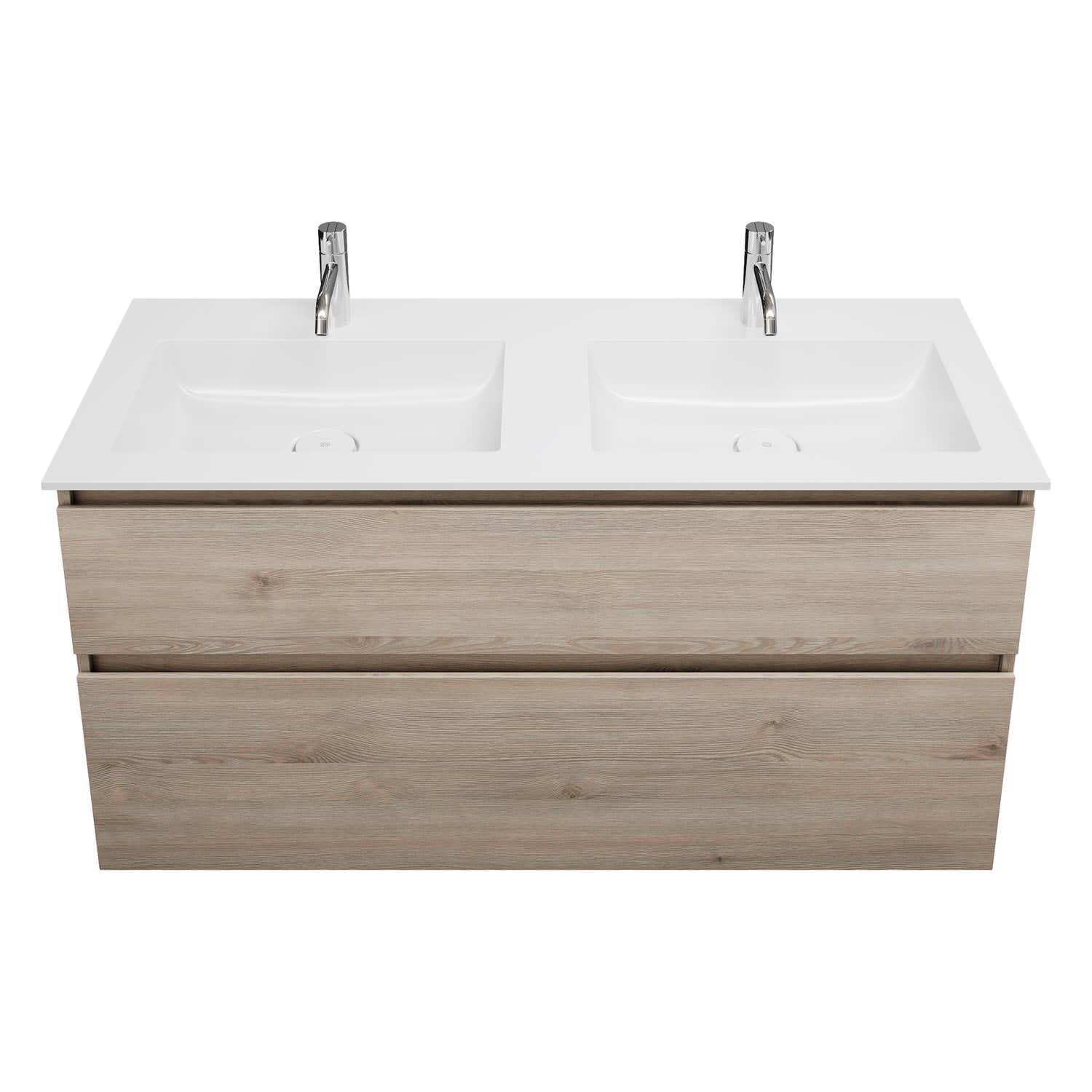 burgbad Lin20 Waschtischunterschrank mit Mineralguss-Doppelwaschtisch 122 cm, 2 Auszüge, links und rechts