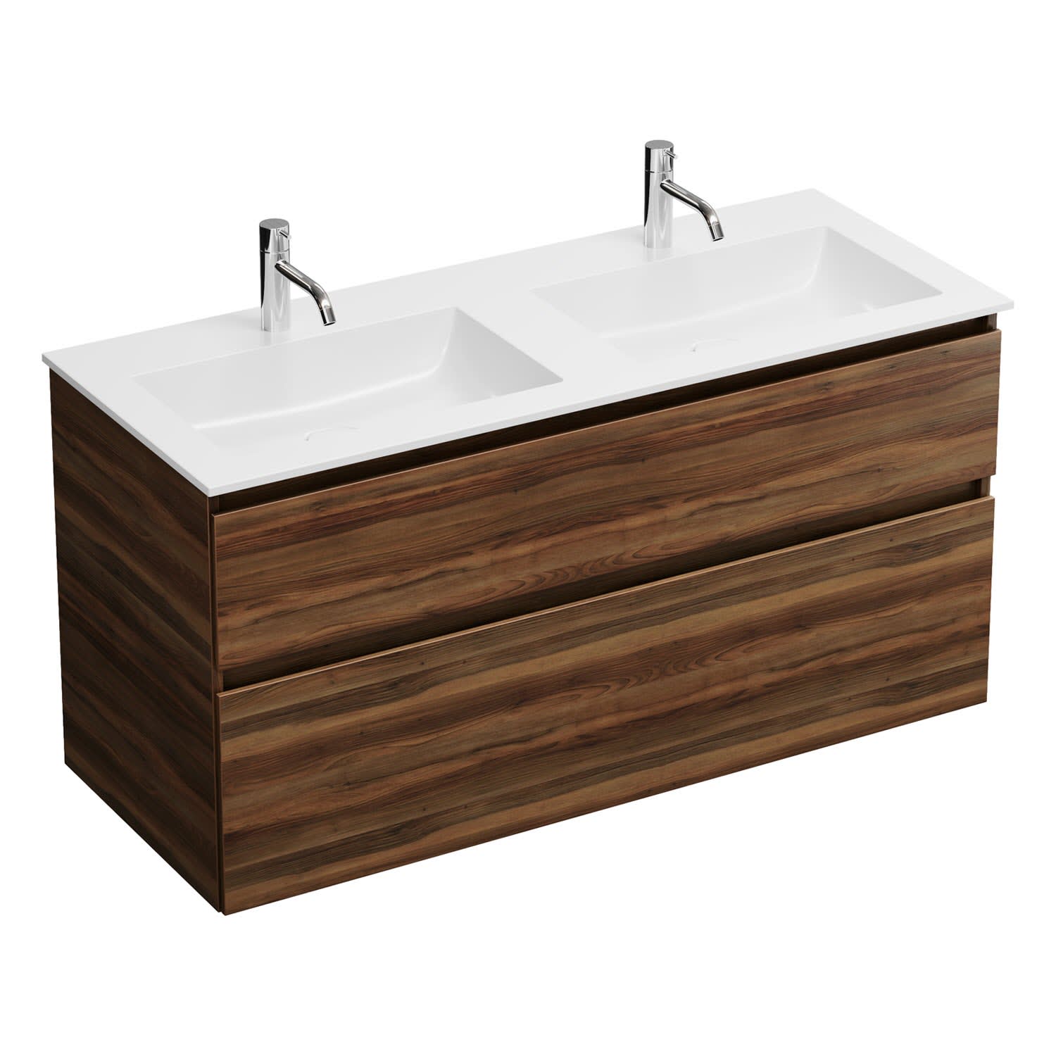 burgbad Lin20 Waschtischunterschrank mit Mineralguss-Doppelwaschtisch 122 cm, 2 Auszüge, links und rechts