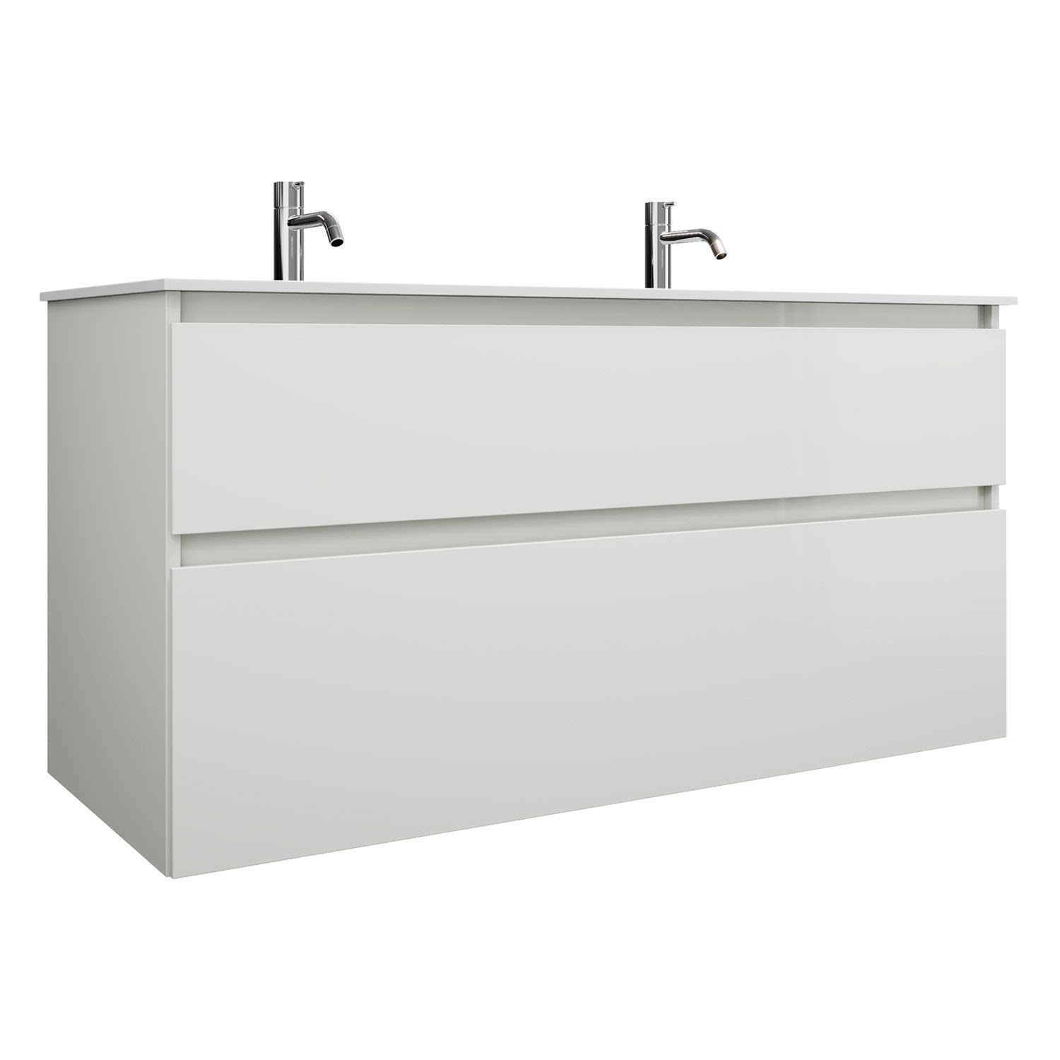 burgbad Lin20 Waschtischunterschrank mit Mineralguss-Doppelwaschtisch 122 cm, 2 Auszüge, links und rechts