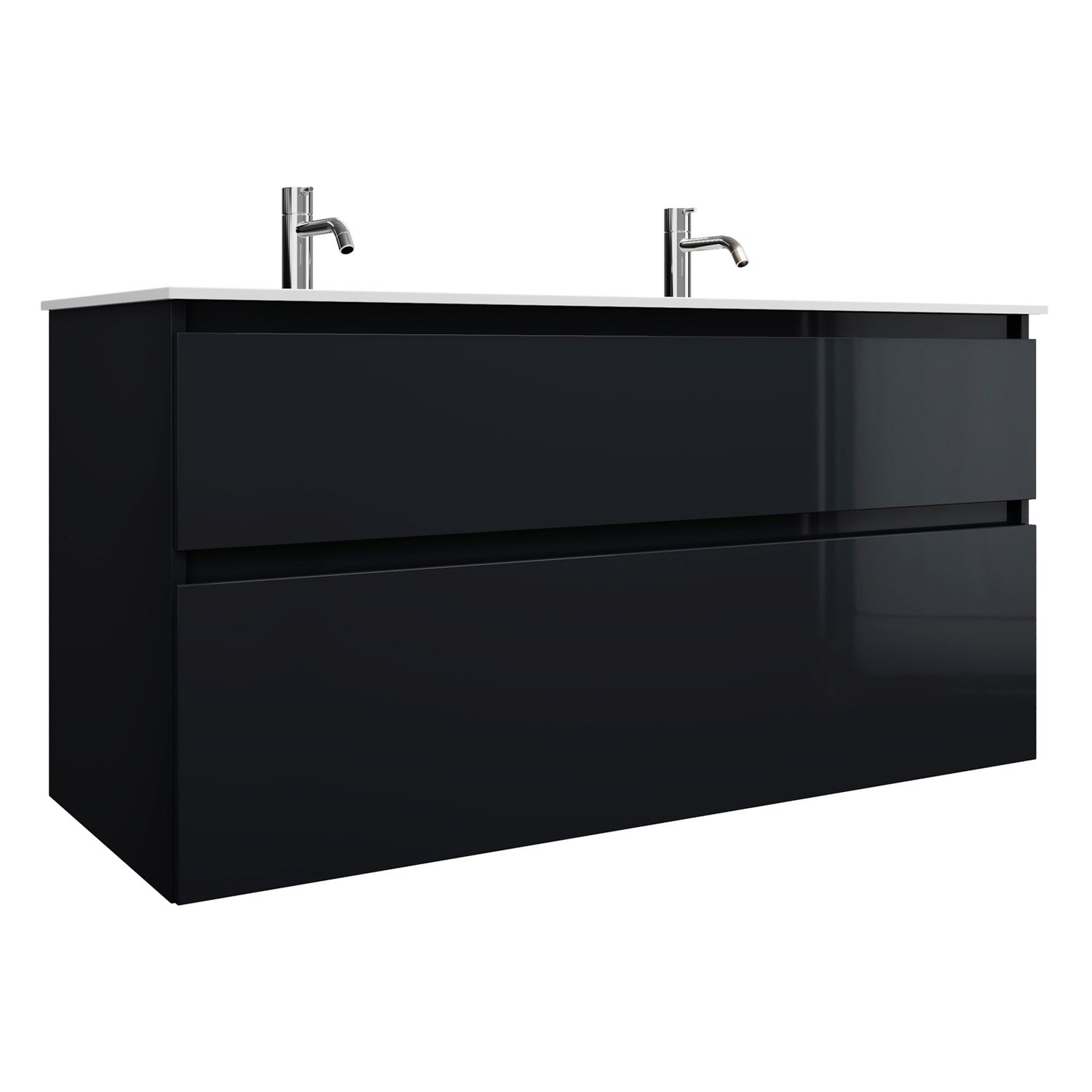 burgbad Lin20 Waschtischunterschrank mit Mineralguss-Doppelwaschtisch 122 cm, 2 Auszüge, links und rechts
