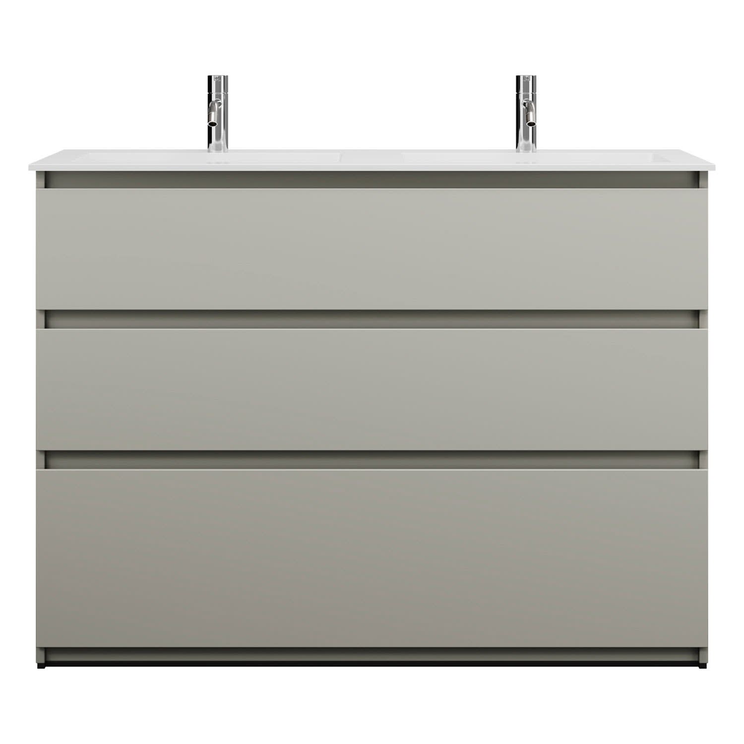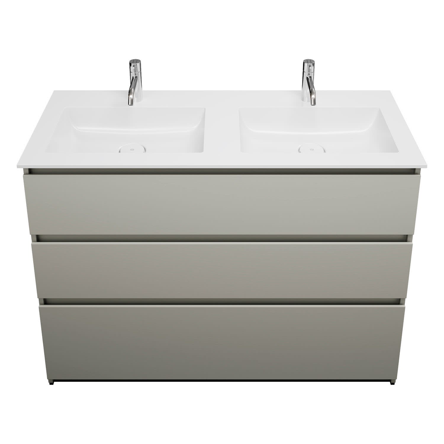 burgbad Lin20 Waschtischunterschrank mit Mineralguss-Doppelwaschtisch 122 cm, 3 Auszüge, links und rechts