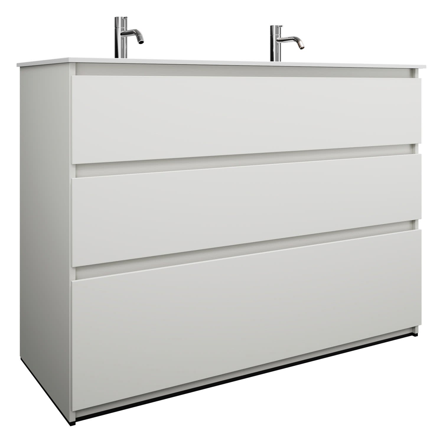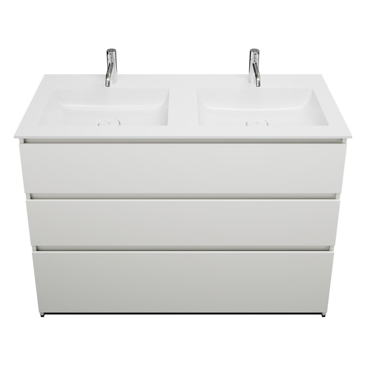 burgbad Lin20 Waschtischunterschrank mit Mineralguss-Doppelwaschtisch 122 cm, 3 Auszüge, links und rechts