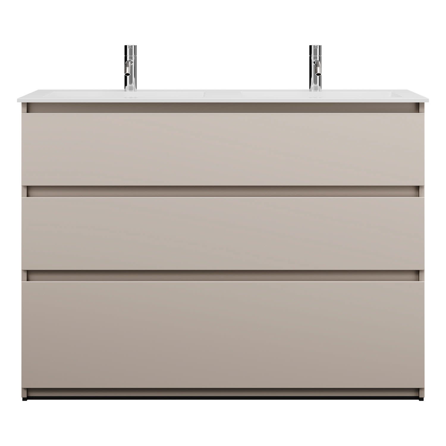 burgbad Lin20 Waschtischunterschrank mit Mineralguss-Doppelwaschtisch 122 cm, 3 Auszüge, links und rechts
