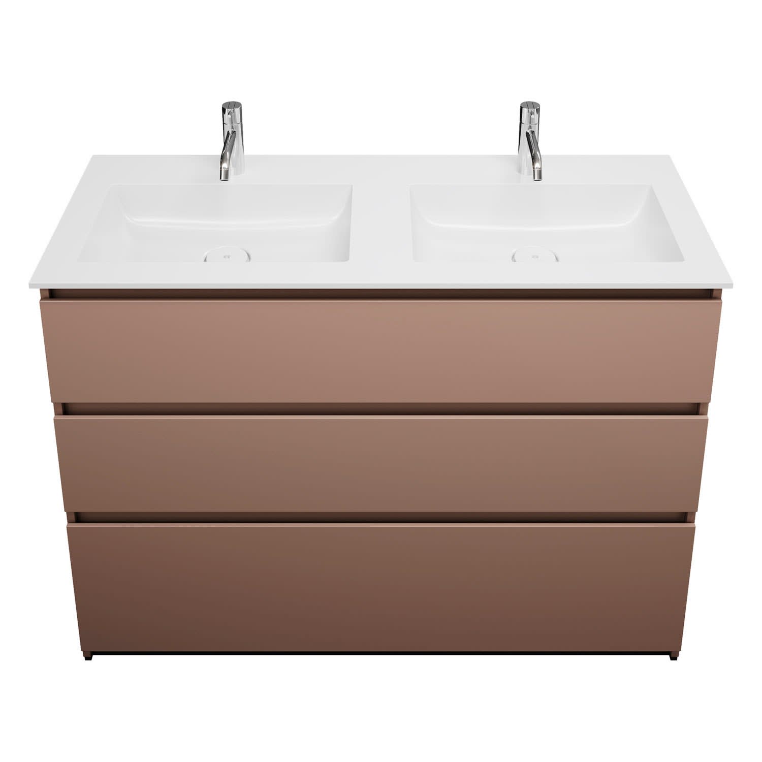 burgbad Lin20 Waschtischunterschrank mit Mineralguss-Doppelwaschtisch 122 cm, 3 Auszüge, links und rechts