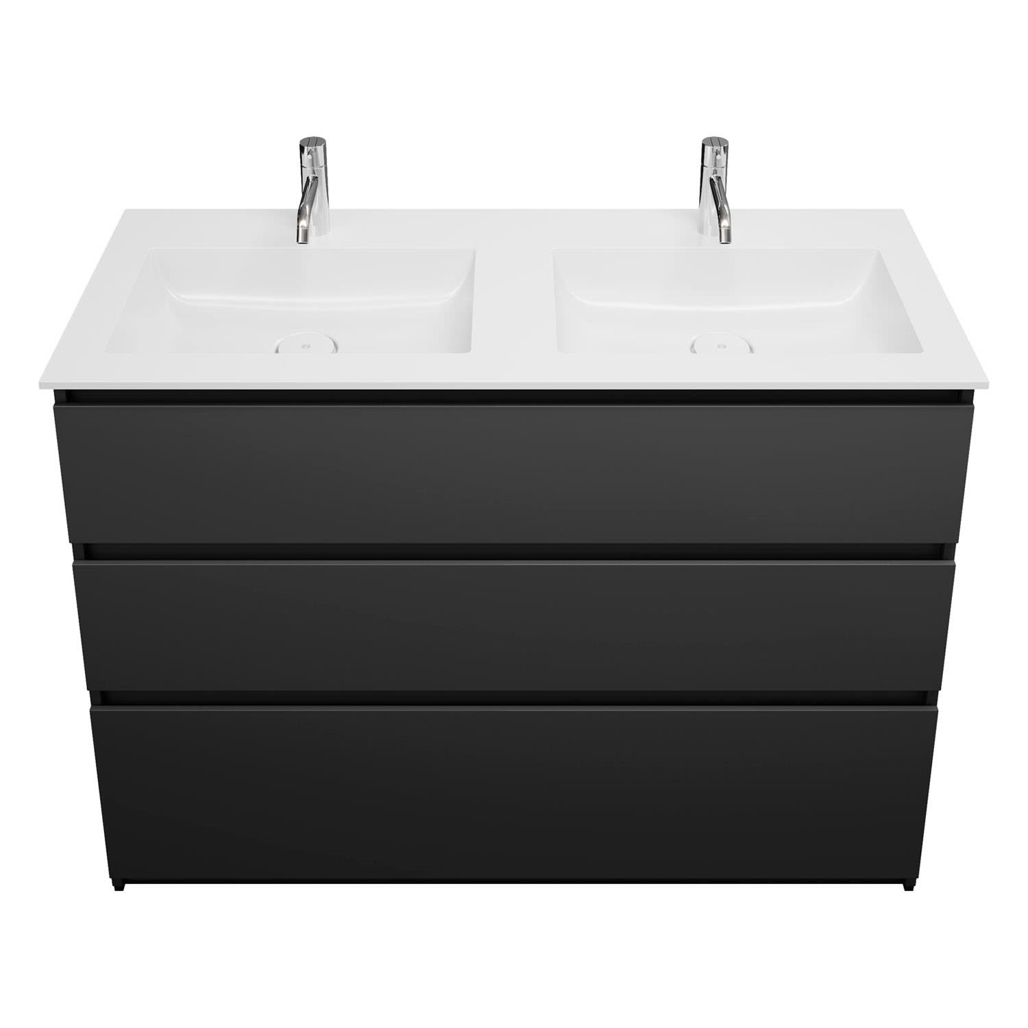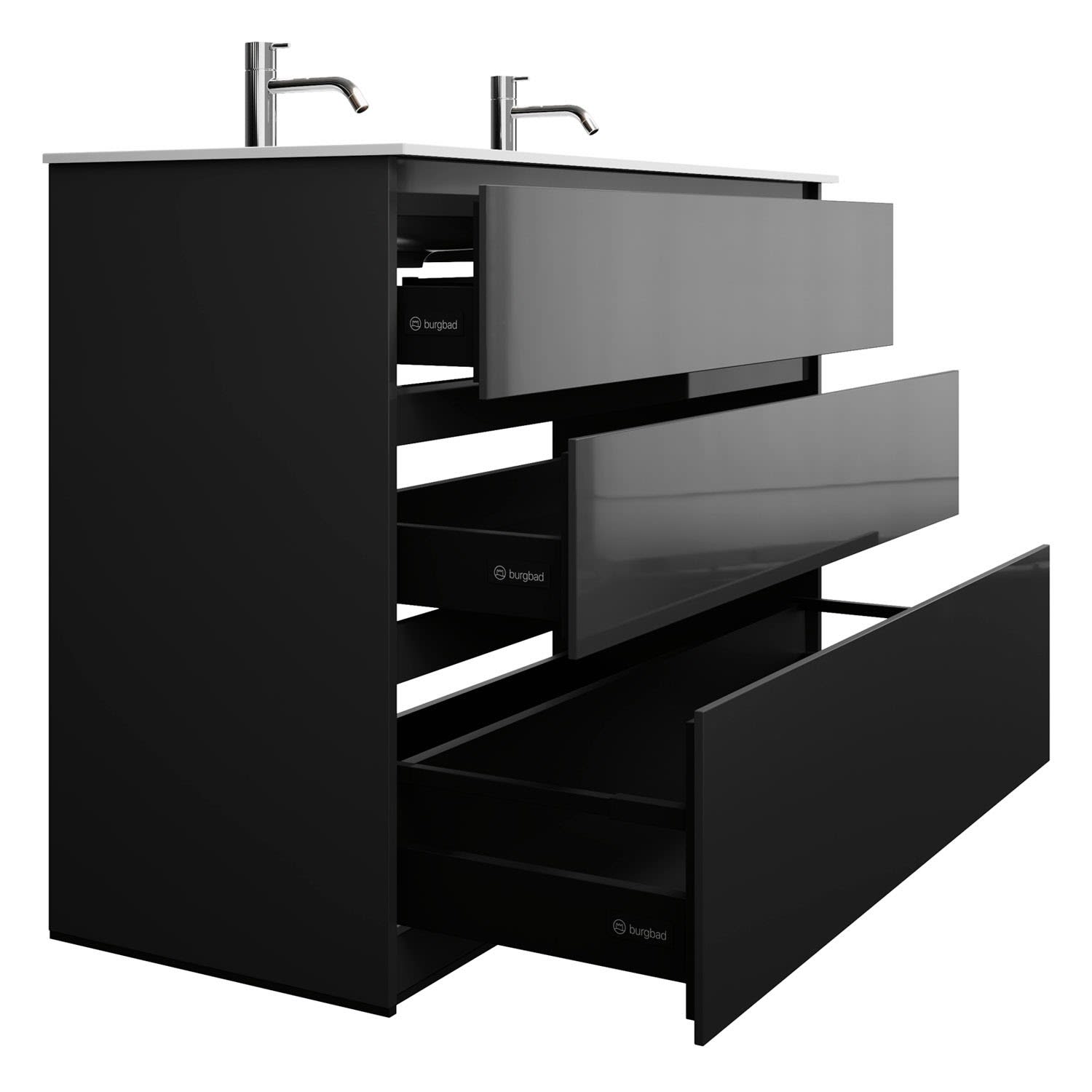 burgbad Lin20 Waschtischunterschrank mit Mineralguss-Doppelwaschtisch 122 cm, 3 Auszüge, links und rechts