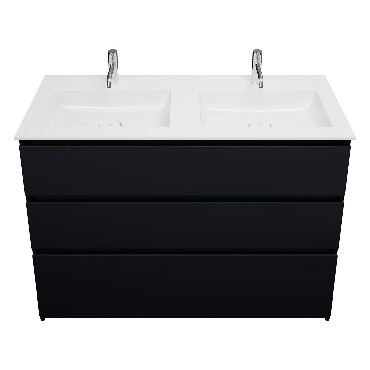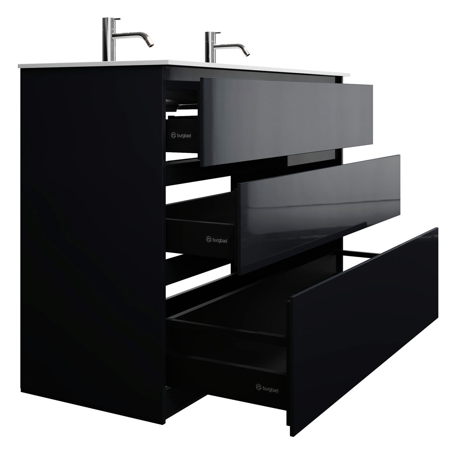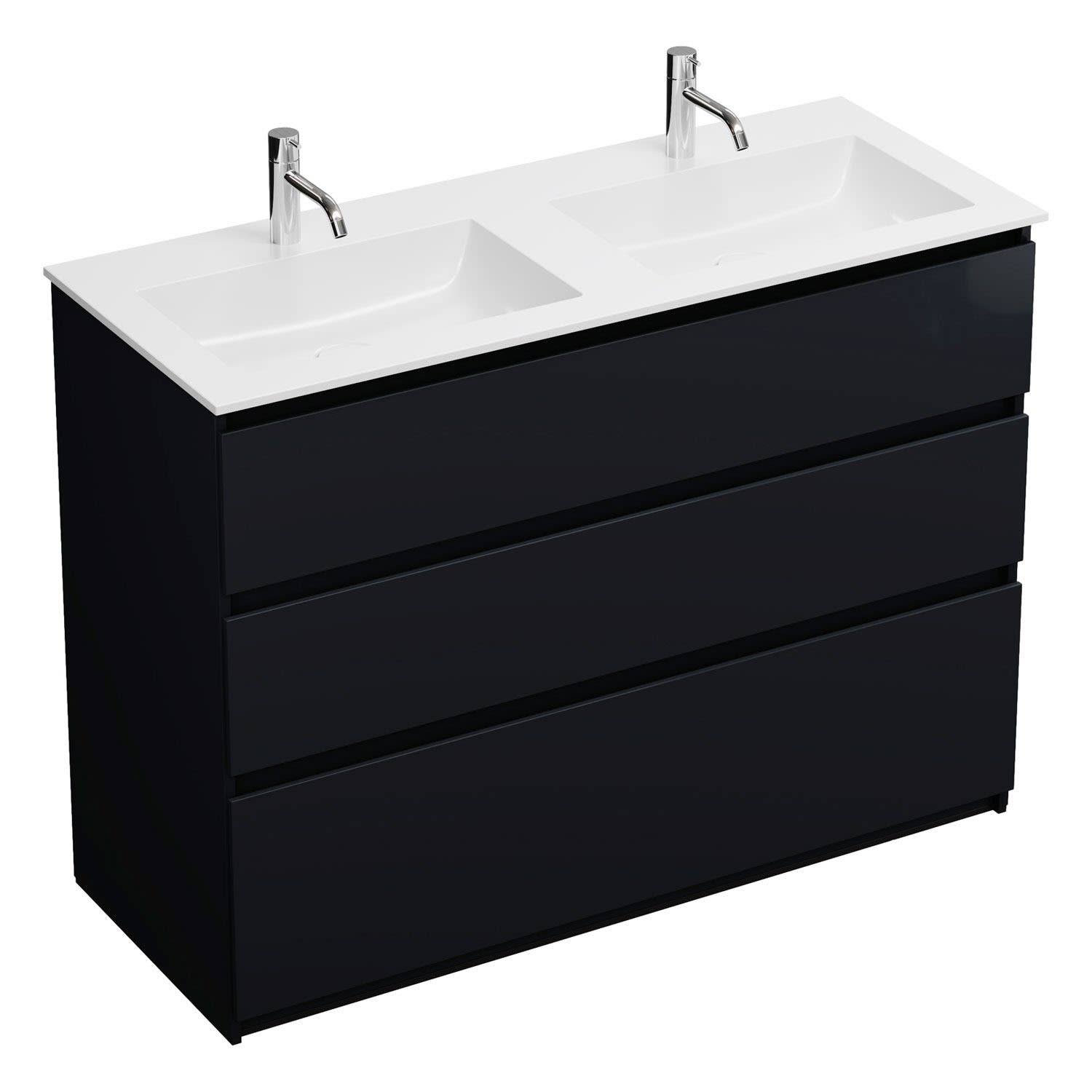 burgbad Lin20 Waschtischunterschrank mit Mineralguss-Doppelwaschtisch 122 cm, 3 Auszüge, links und rechts