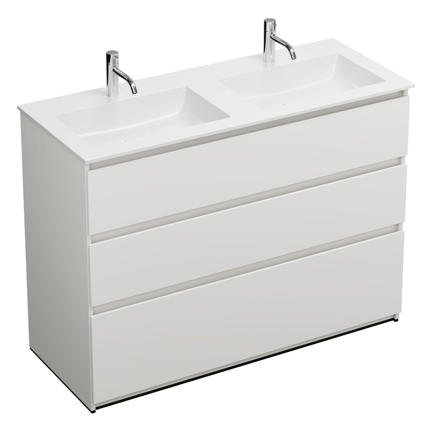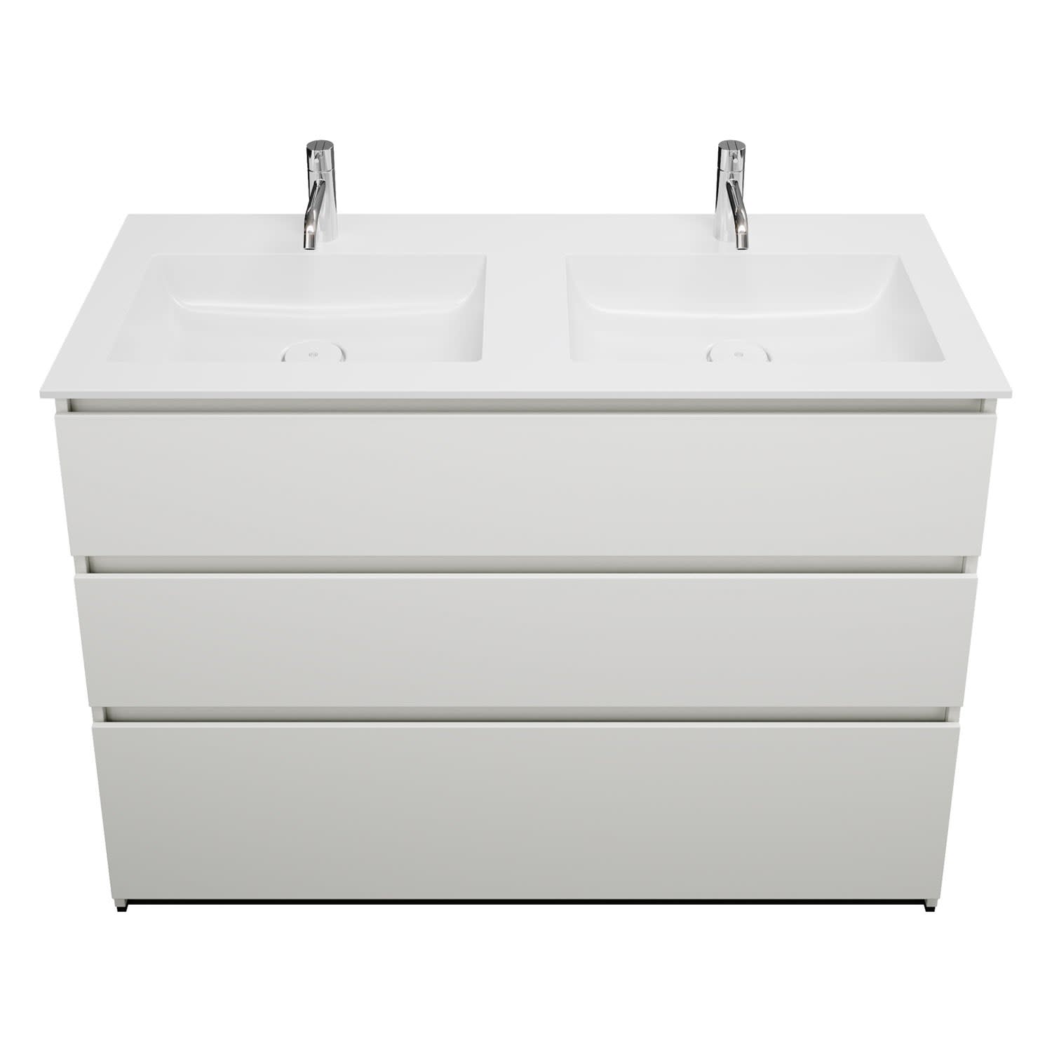 burgbad Lin20 Waschtischunterschrank mit Mineralguss-Doppelwaschtisch 122 cm, 3 Auszüge, links und rechts