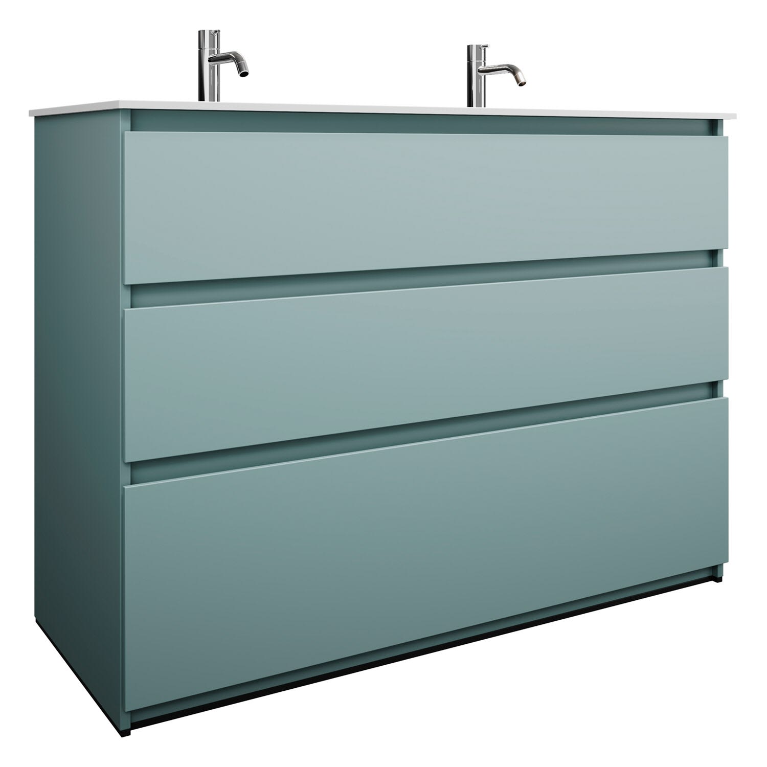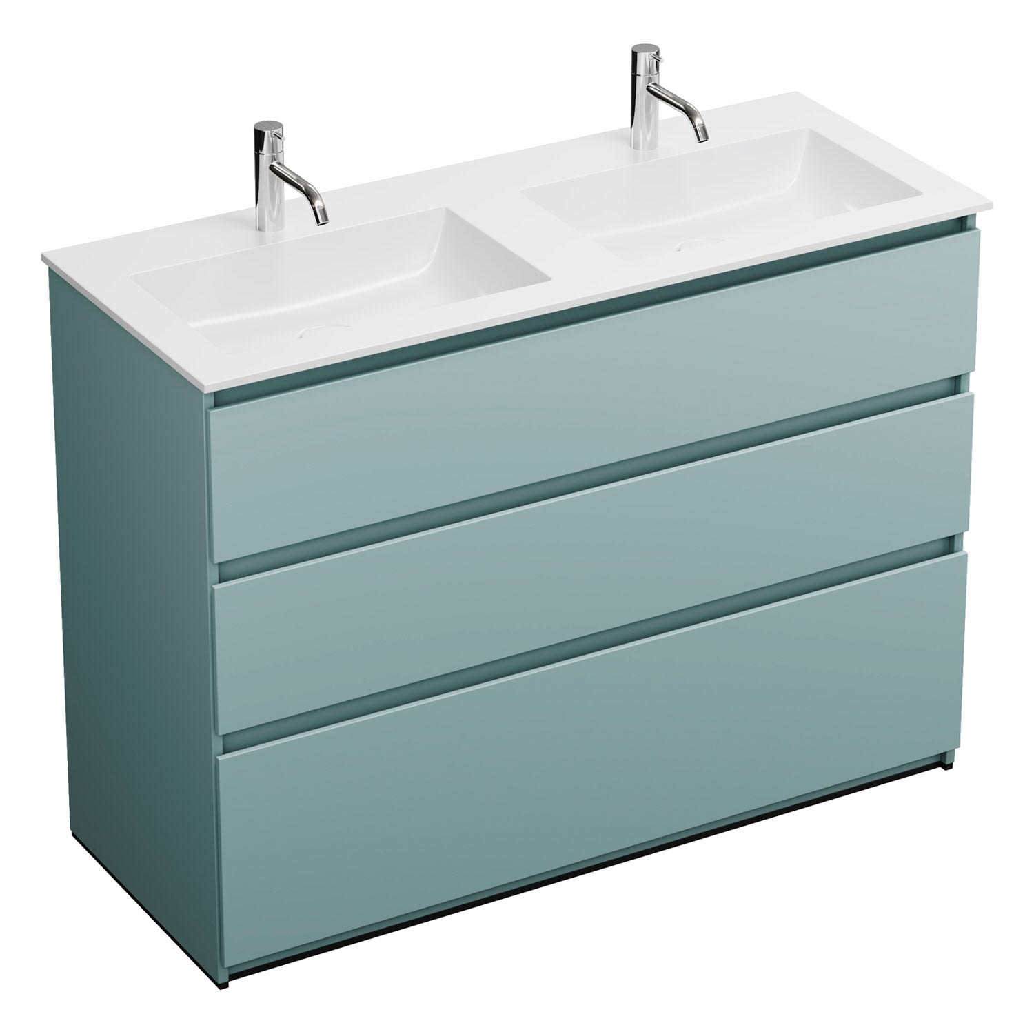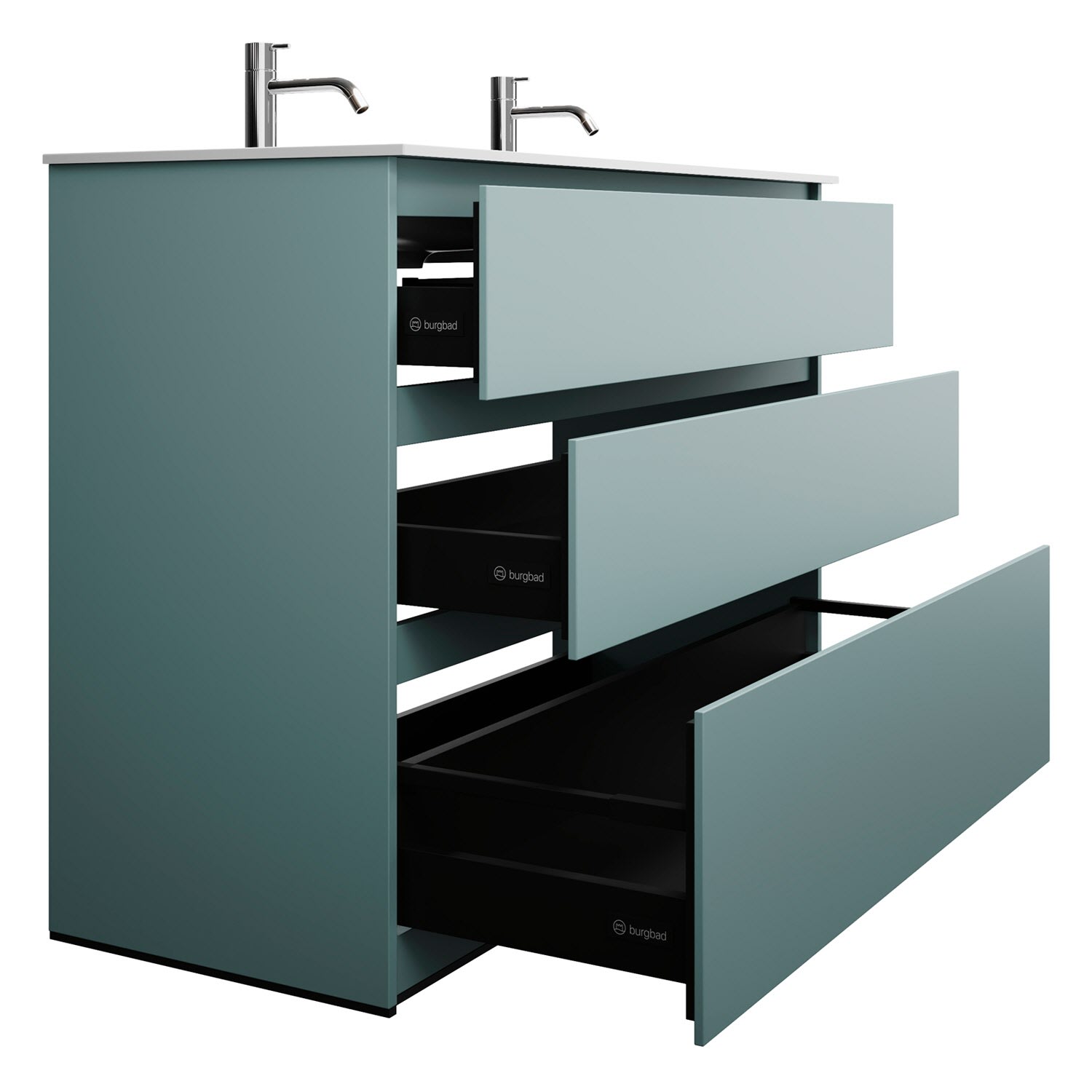 burgbad Lin20 Waschtischunterschrank mit Mineralguss-Doppelwaschtisch 122 cm, 3 Auszüge, links und rechts