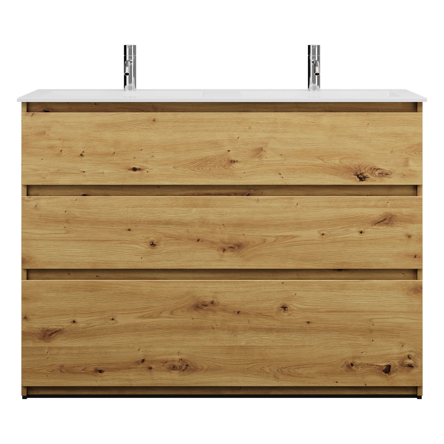 burgbad Lin20 Waschtischunterschrank mit Mineralguss-Doppelwaschtisch 122 cm, 3 Auszüge, links und rechts