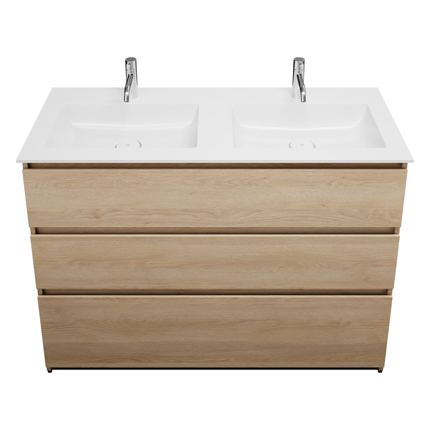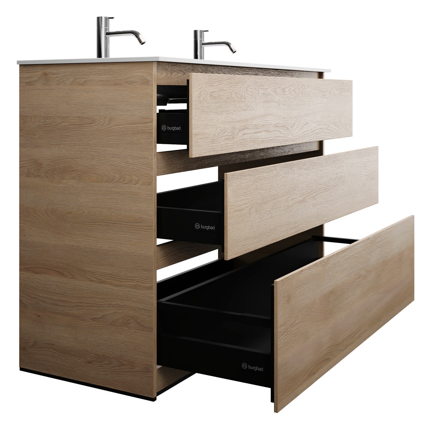 burgbad Lin20 Waschtischunterschrank mit Mineralguss-Doppelwaschtisch 122 cm, 3 Auszüge, links und rechts