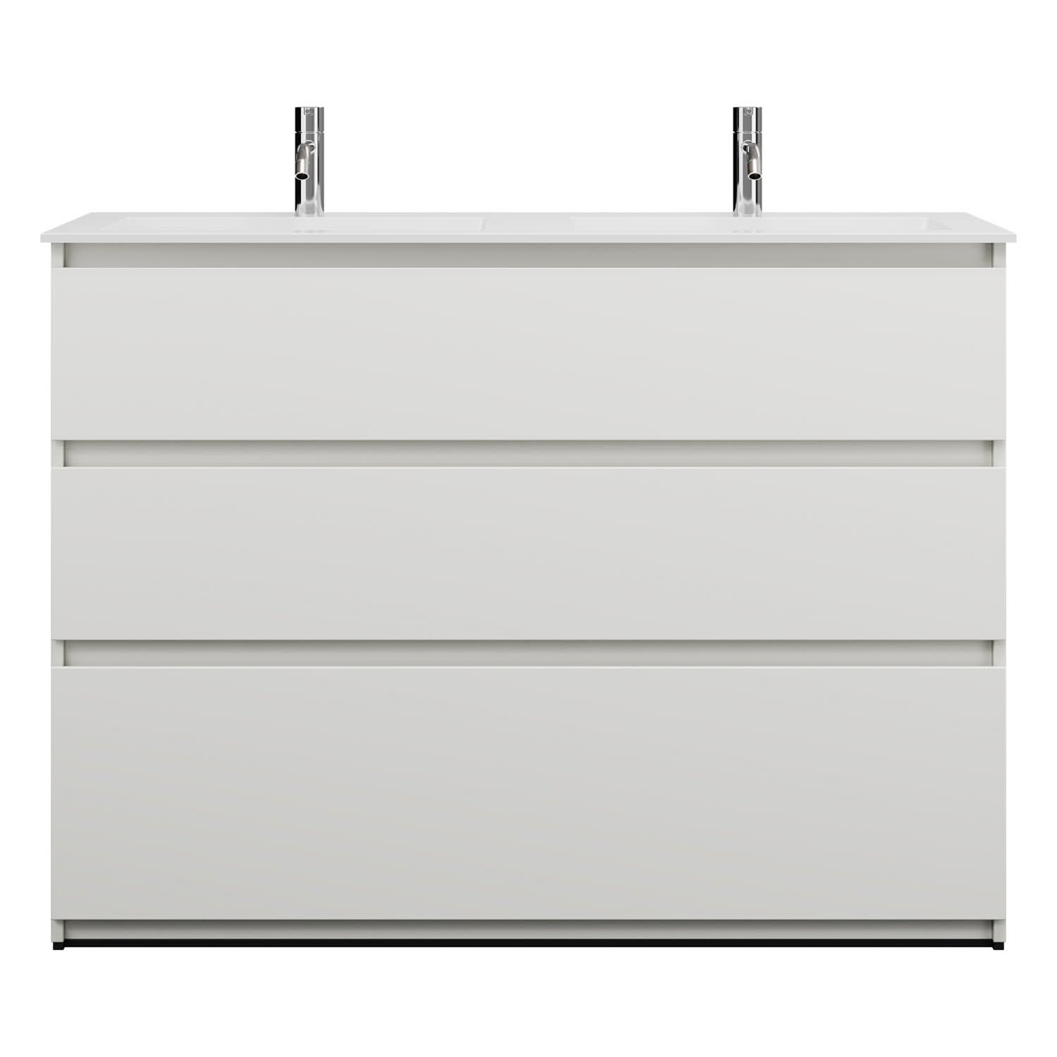 burgbad Lin20 Waschtischunterschrank mit Mineralguss-Doppelwaschtisch 122 cm, 3 Auszüge, links und rechts