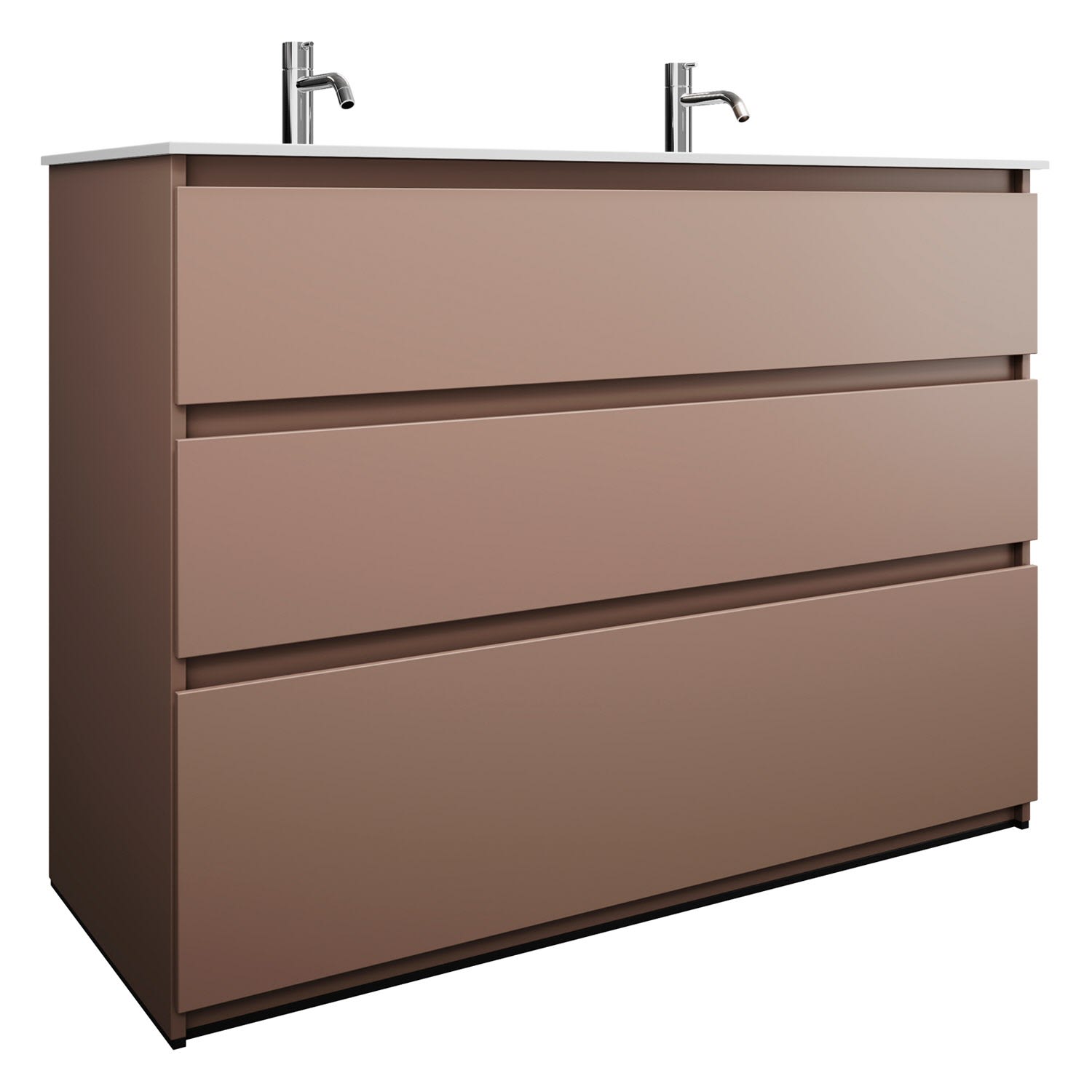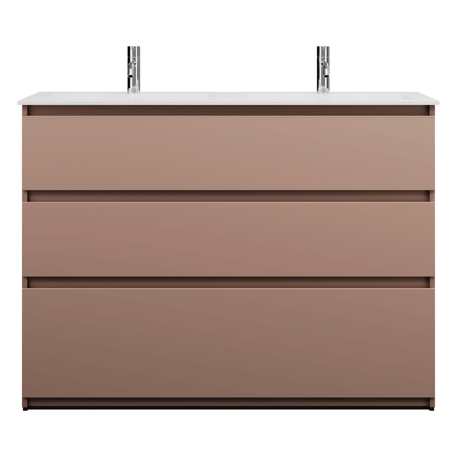 burgbad Lin20 Waschtischunterschrank mit Mineralguss-Doppelwaschtisch 122 cm, 3 Auszüge, links und rechts