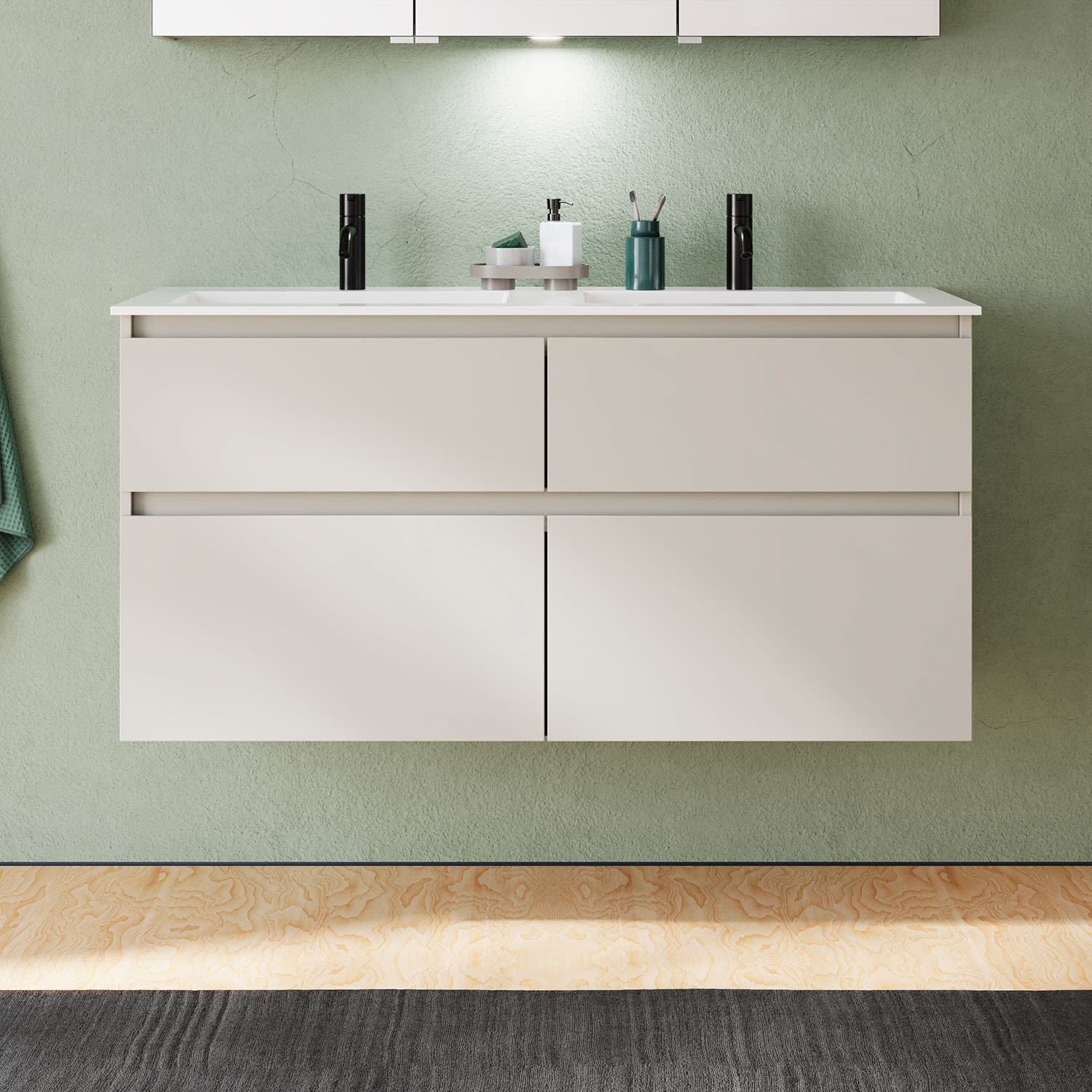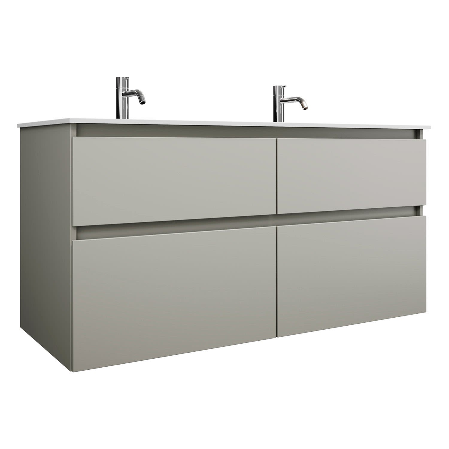 burgbad Lin20 Waschtischunterschrank mit Mineralguss-Doppelwaschtisch 122 cm, 4 Auszüge, links und rechts