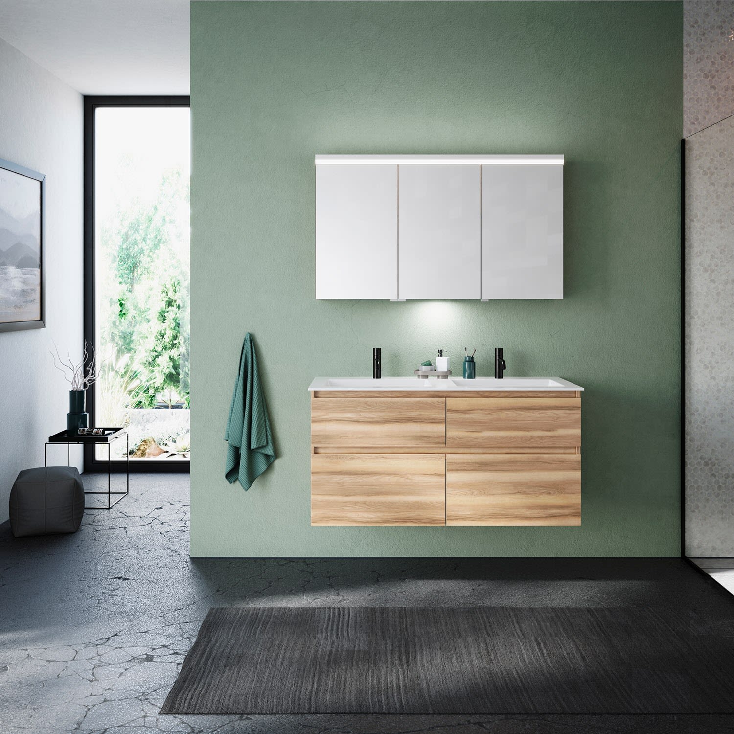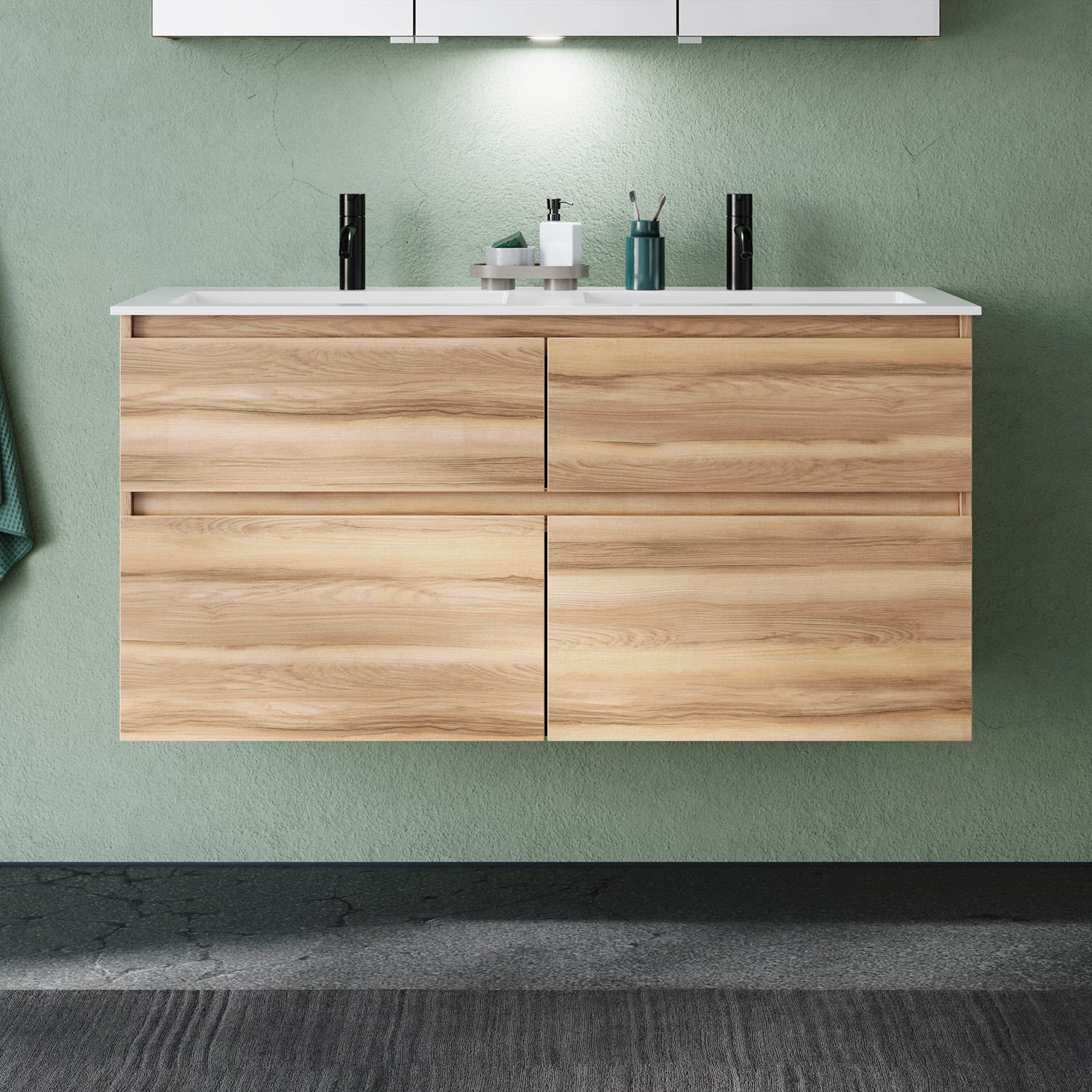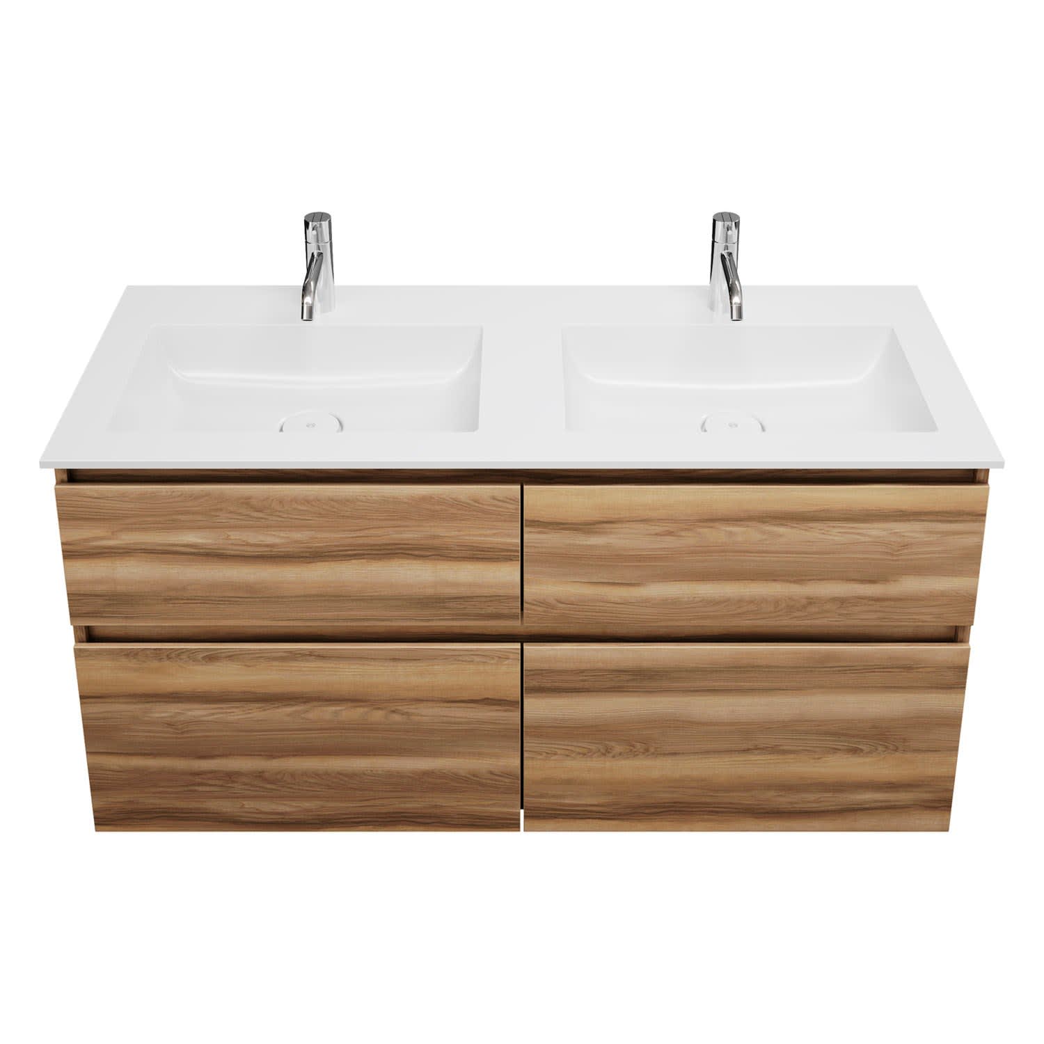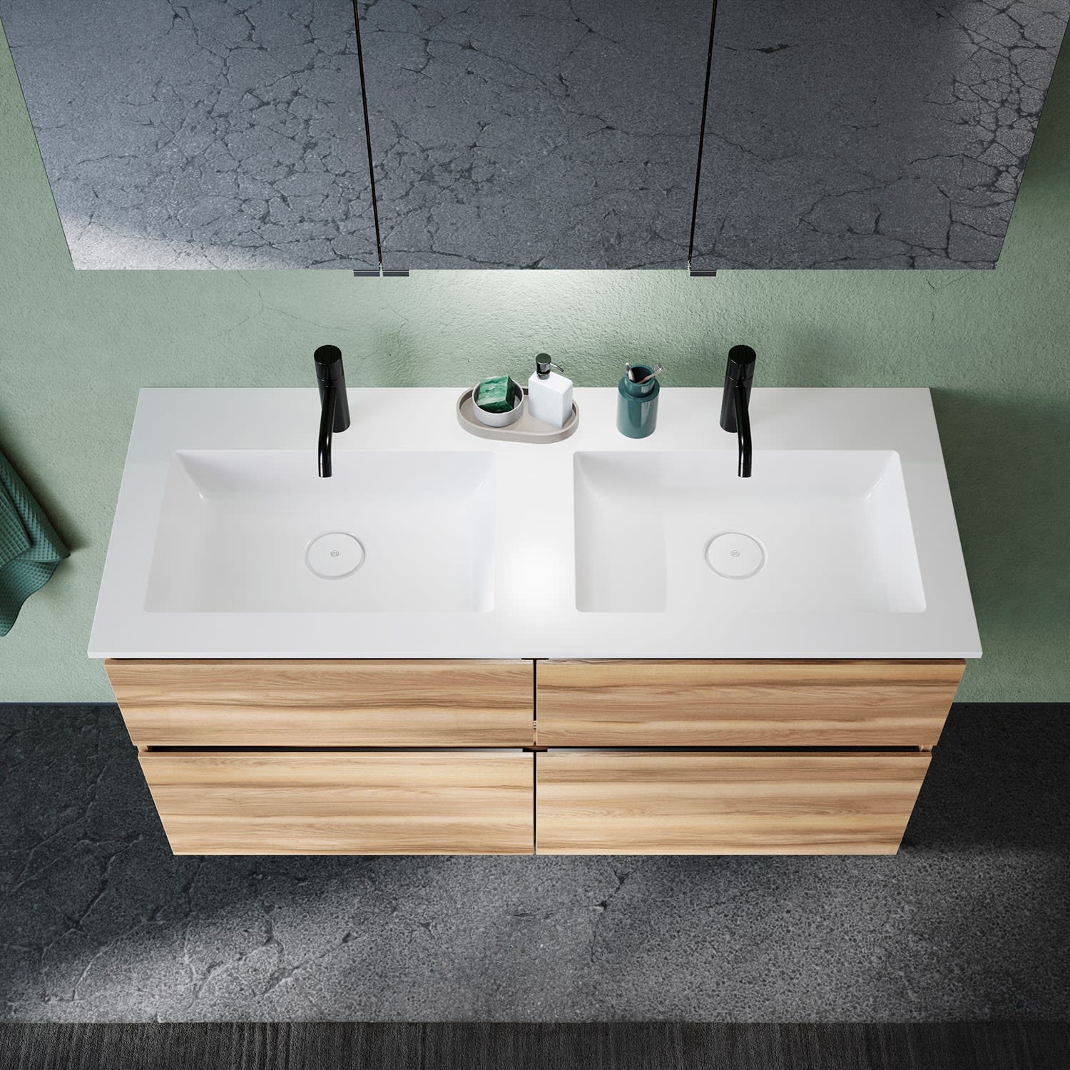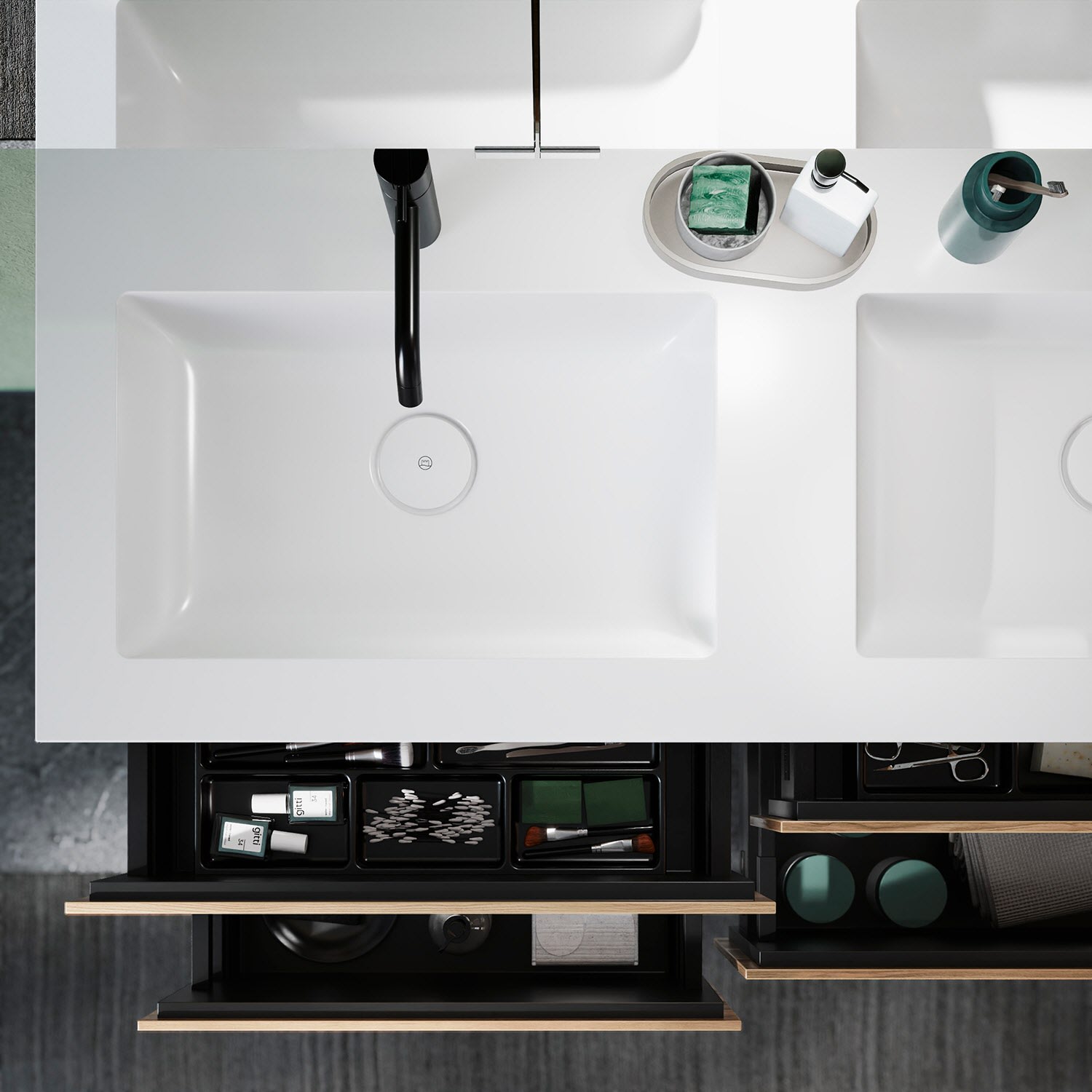 burgbad Lin20 Waschtischunterschrank mit Mineralguss-Doppelwaschtisch 122 cm, 4 Auszüge, links und rechts