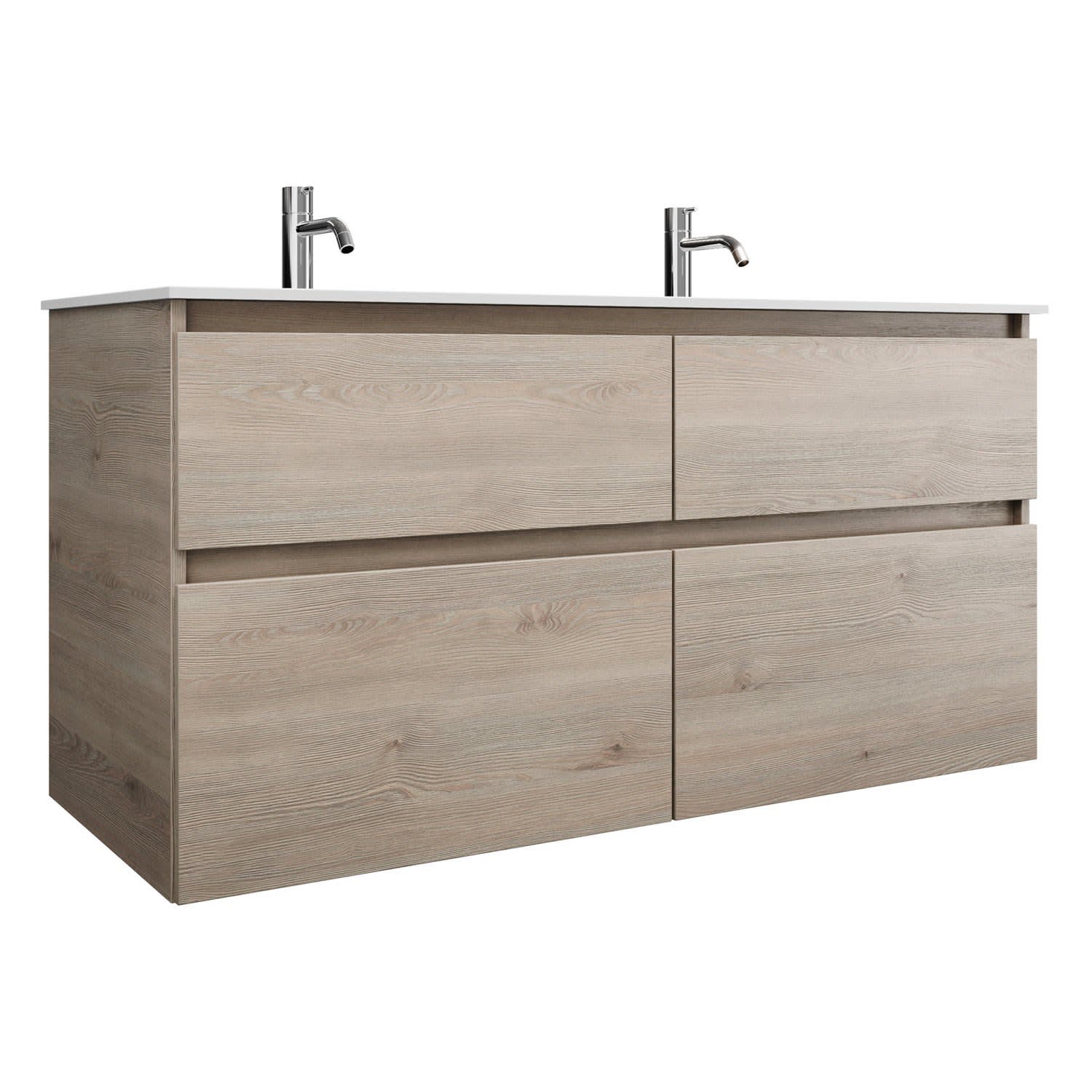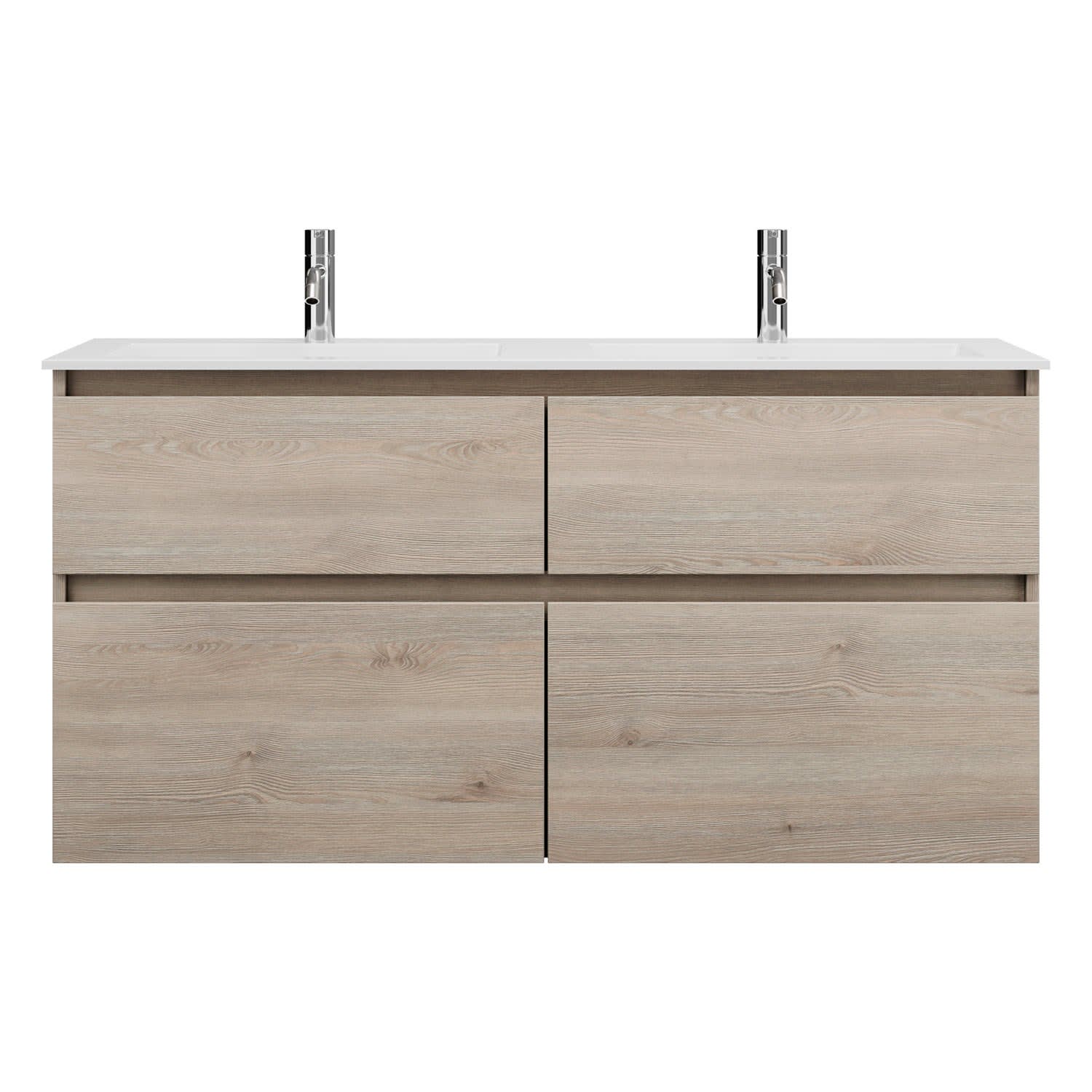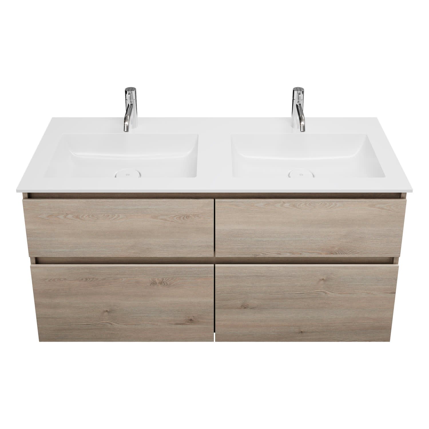 burgbad Lin20 Waschtischunterschrank mit Mineralguss-Doppelwaschtisch 122 cm, 4 Auszüge, links und rechts
