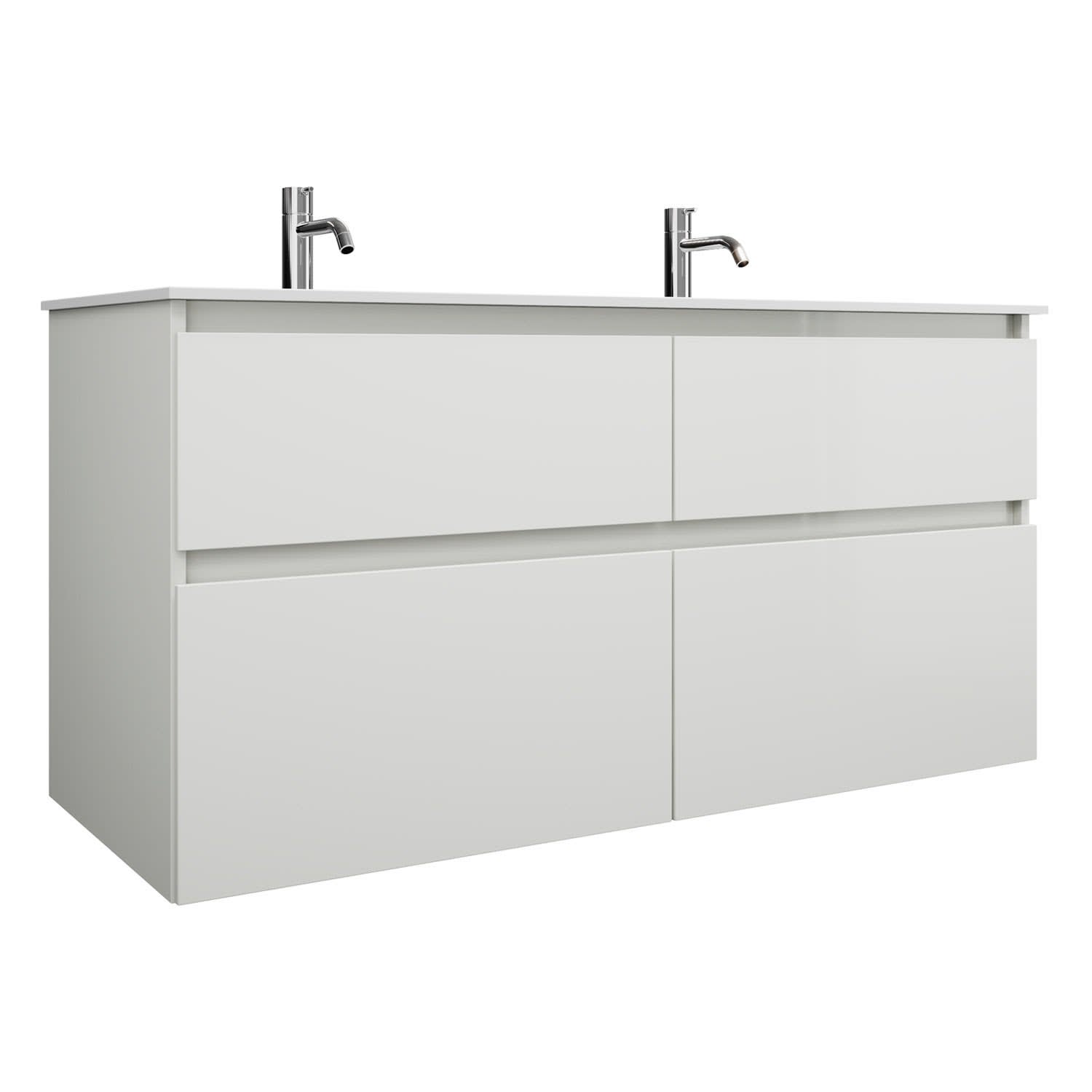 burgbad Lin20 Waschtischunterschrank mit Mineralguss-Doppelwaschtisch 122 cm, 4 Auszüge, links und rechts