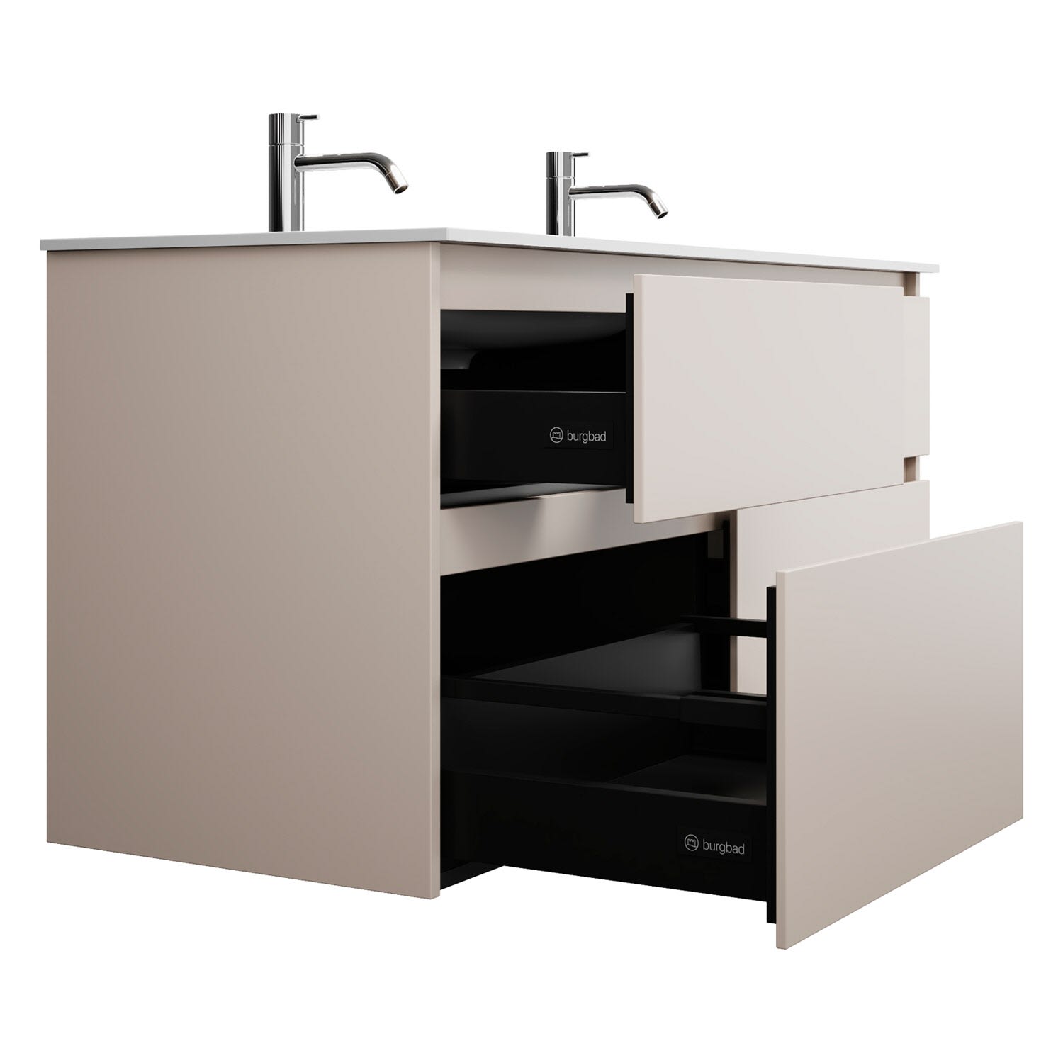 burgbad Lin20 Waschtischunterschrank mit Mineralguss-Doppelwaschtisch 122 cm, 4 Auszüge, links und rechts