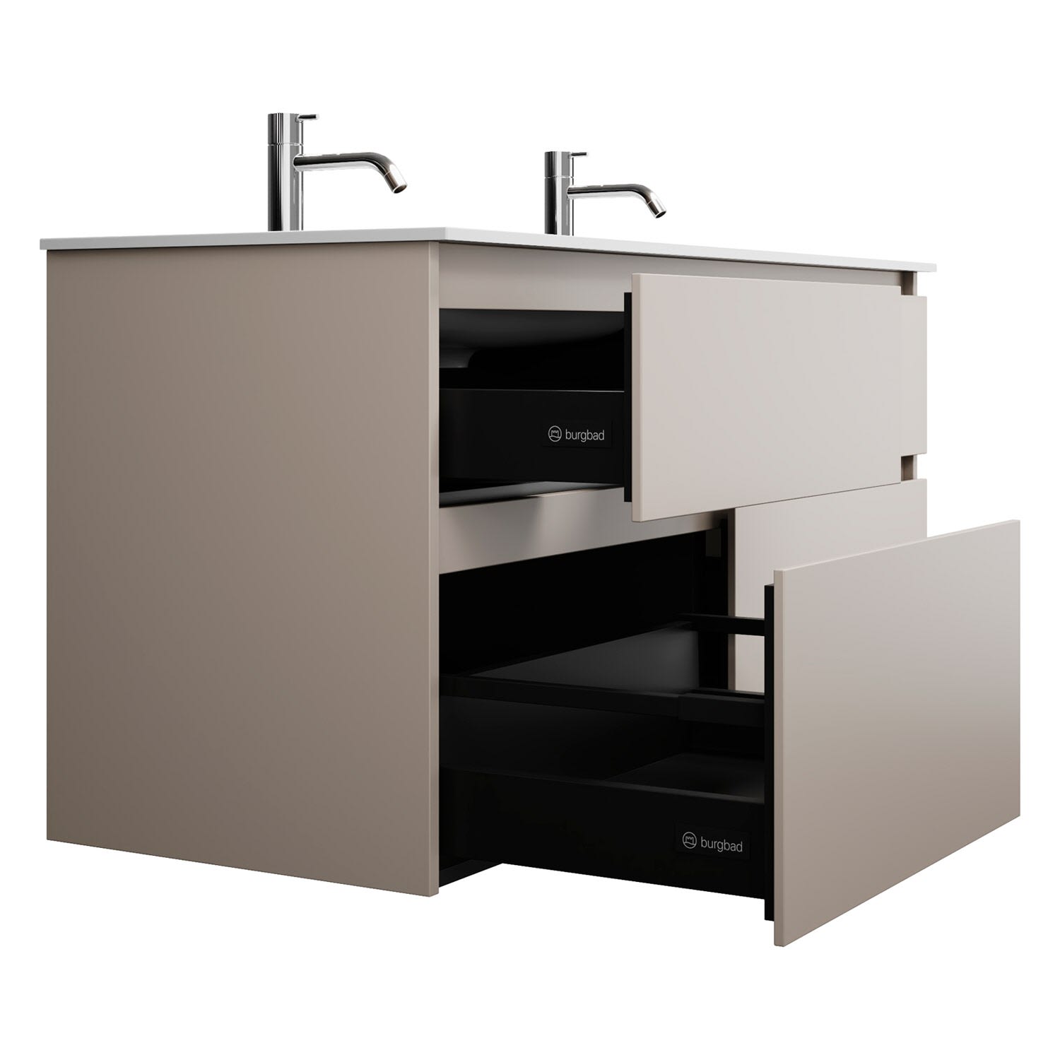 burgbad Lin20 Waschtischunterschrank mit Mineralguss-Doppelwaschtisch 122 cm, 4 Auszüge, links und rechts