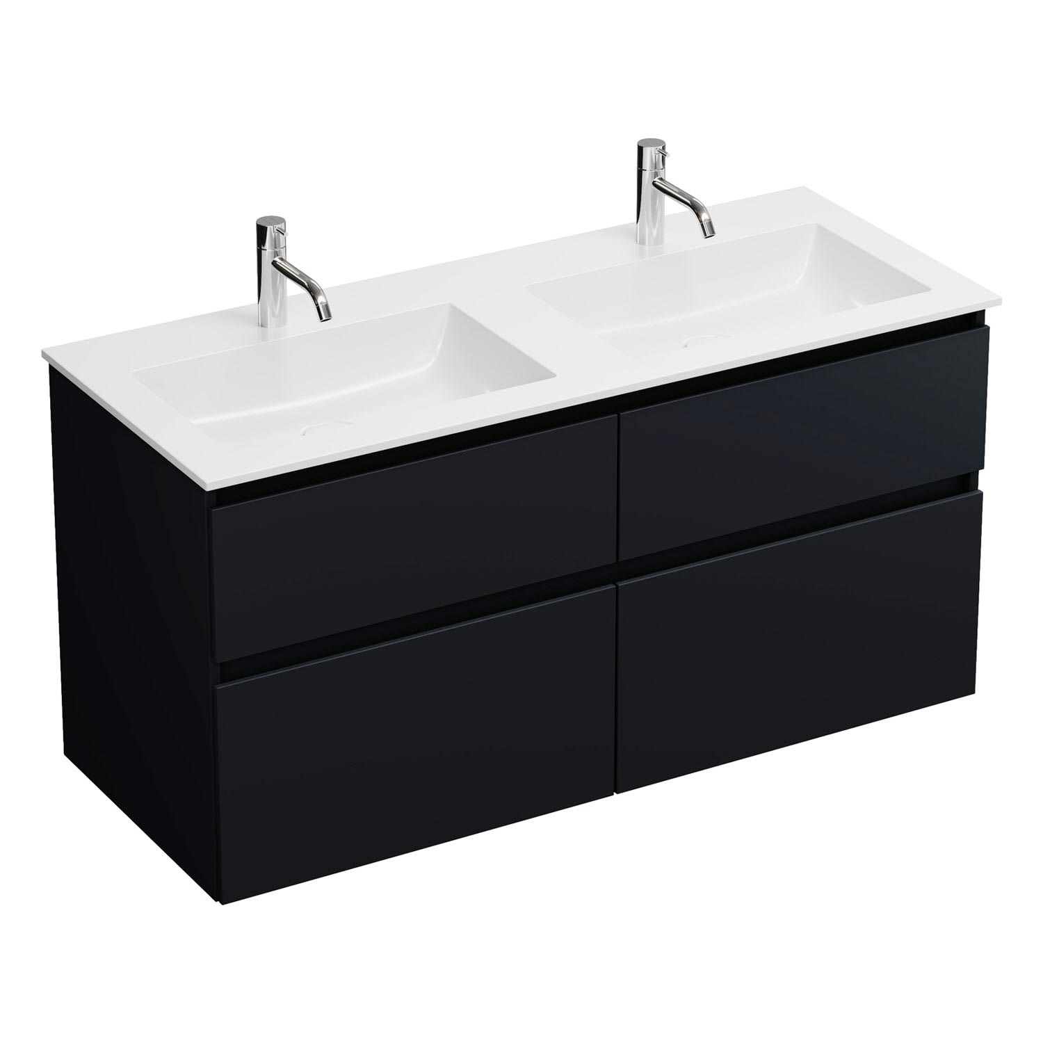 burgbad Lin20 Waschtischunterschrank mit Mineralguss-Doppelwaschtisch 122 cm, 4 Auszüge, links und rechts