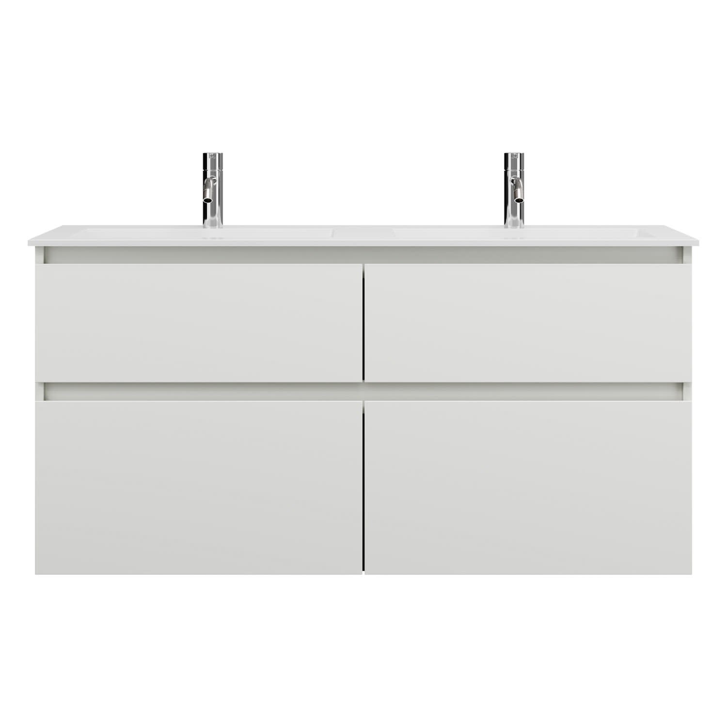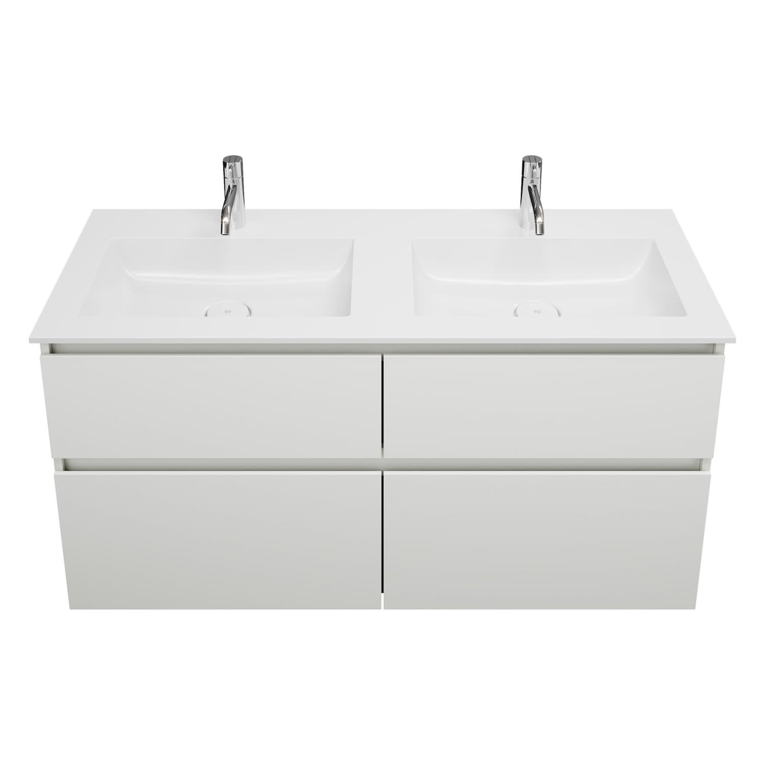 burgbad Lin20 Waschtischunterschrank mit Mineralguss-Doppelwaschtisch 122 cm, 4 Auszüge, links und rechts