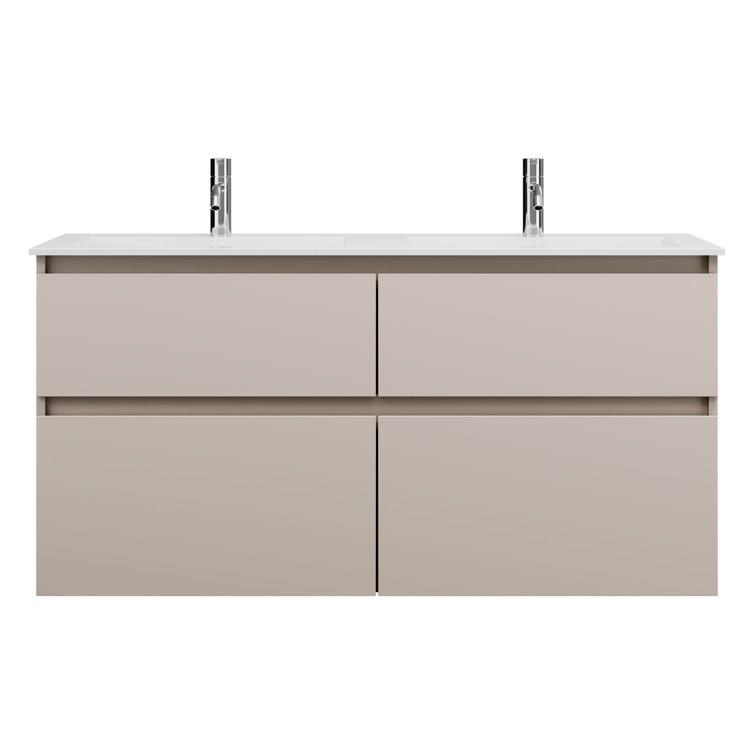 burgbad Lin20 Waschtischunterschrank mit Mineralguss-Doppelwaschtisch 122 cm, 4 Auszüge, links und rechts