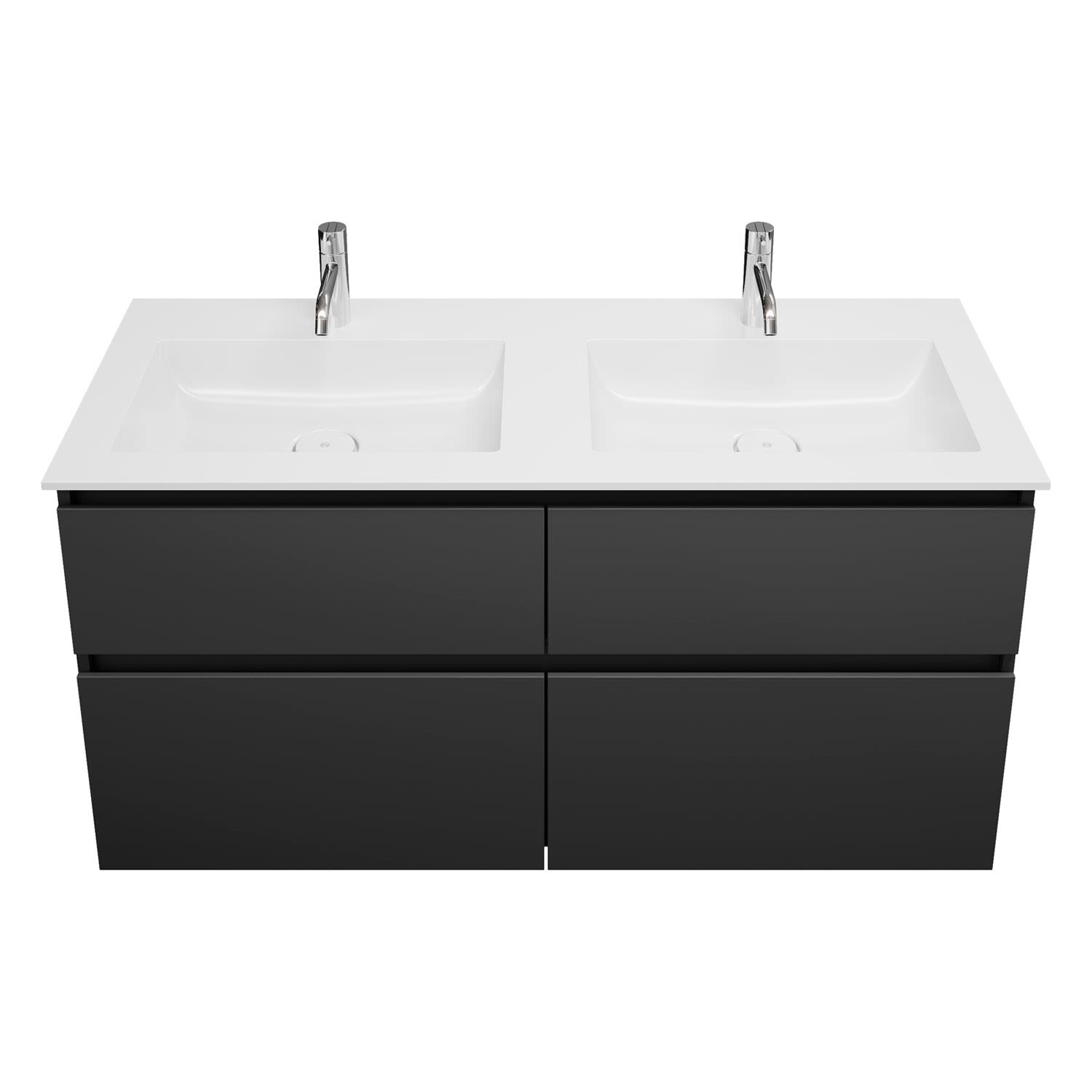 burgbad Lin20 Waschtischunterschrank mit Mineralguss-Doppelwaschtisch 122 cm, 4 Auszüge, links und rechts