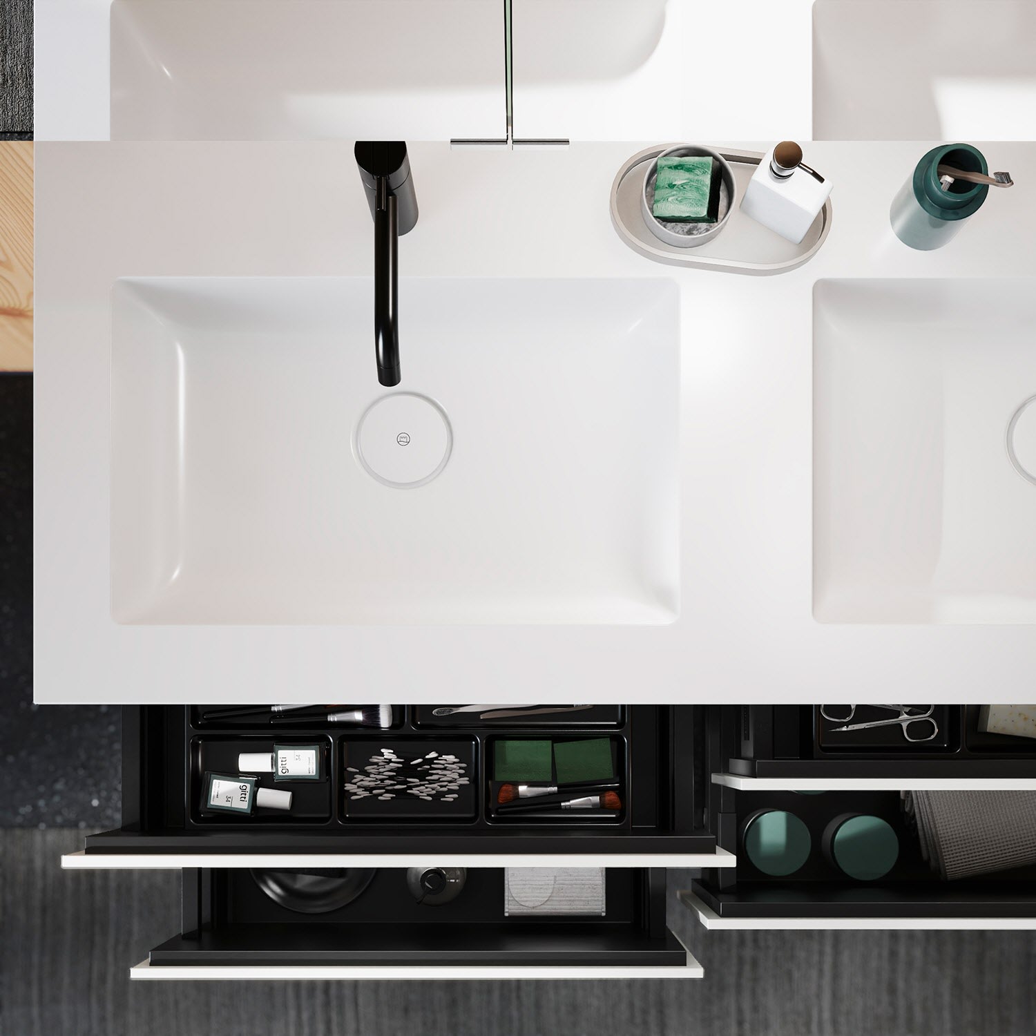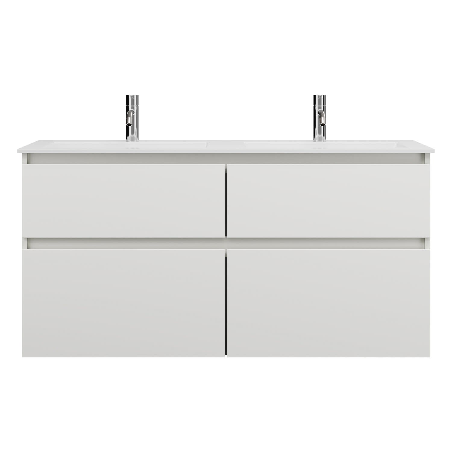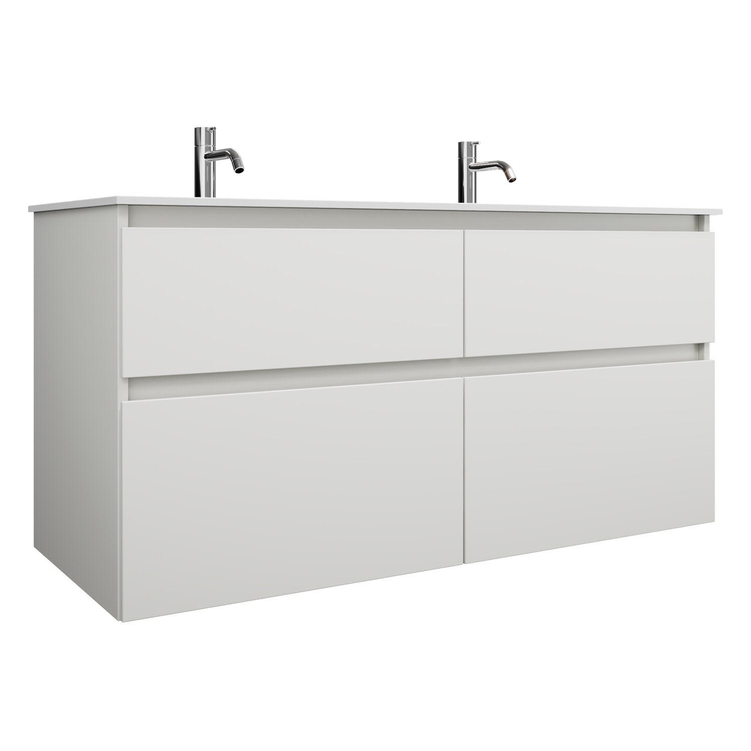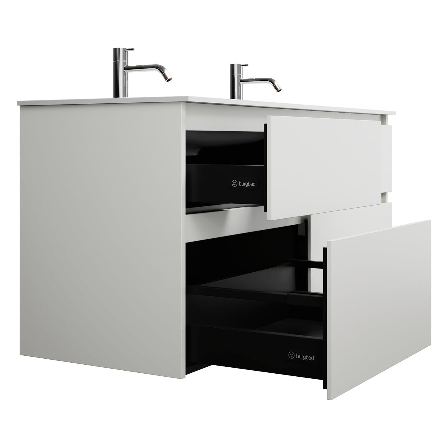 burgbad Lin20 Waschtischunterschrank mit Mineralguss-Doppelwaschtisch 122 cm, 4 Auszüge, links und rechts