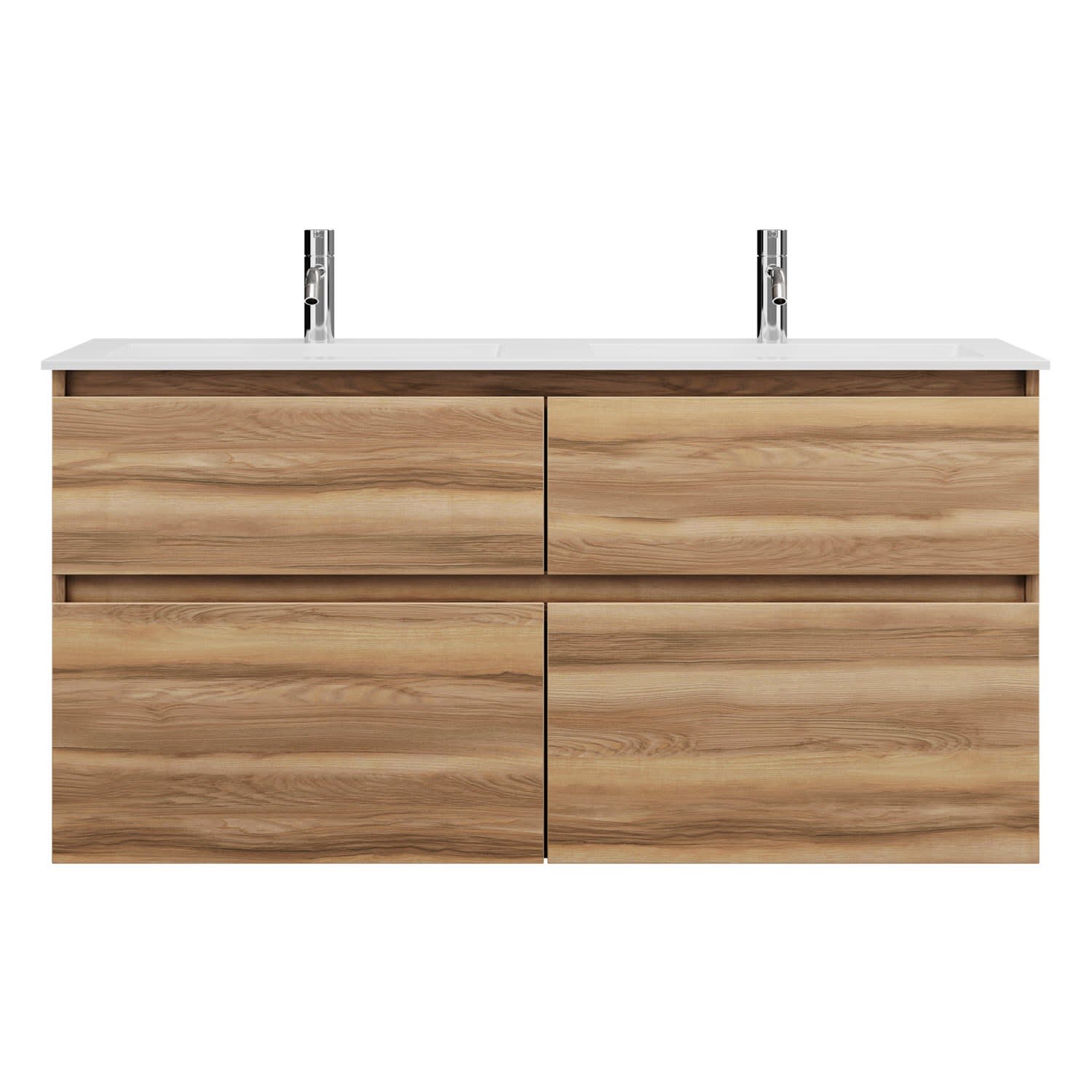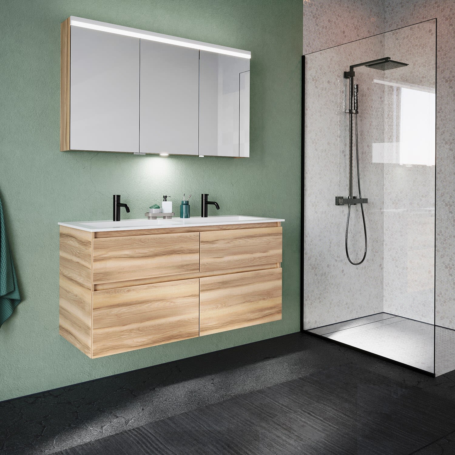 burgbad Lin20 Waschtischunterschrank mit Mineralguss-Doppelwaschtisch 122 cm, 4 Auszüge, links und rechts