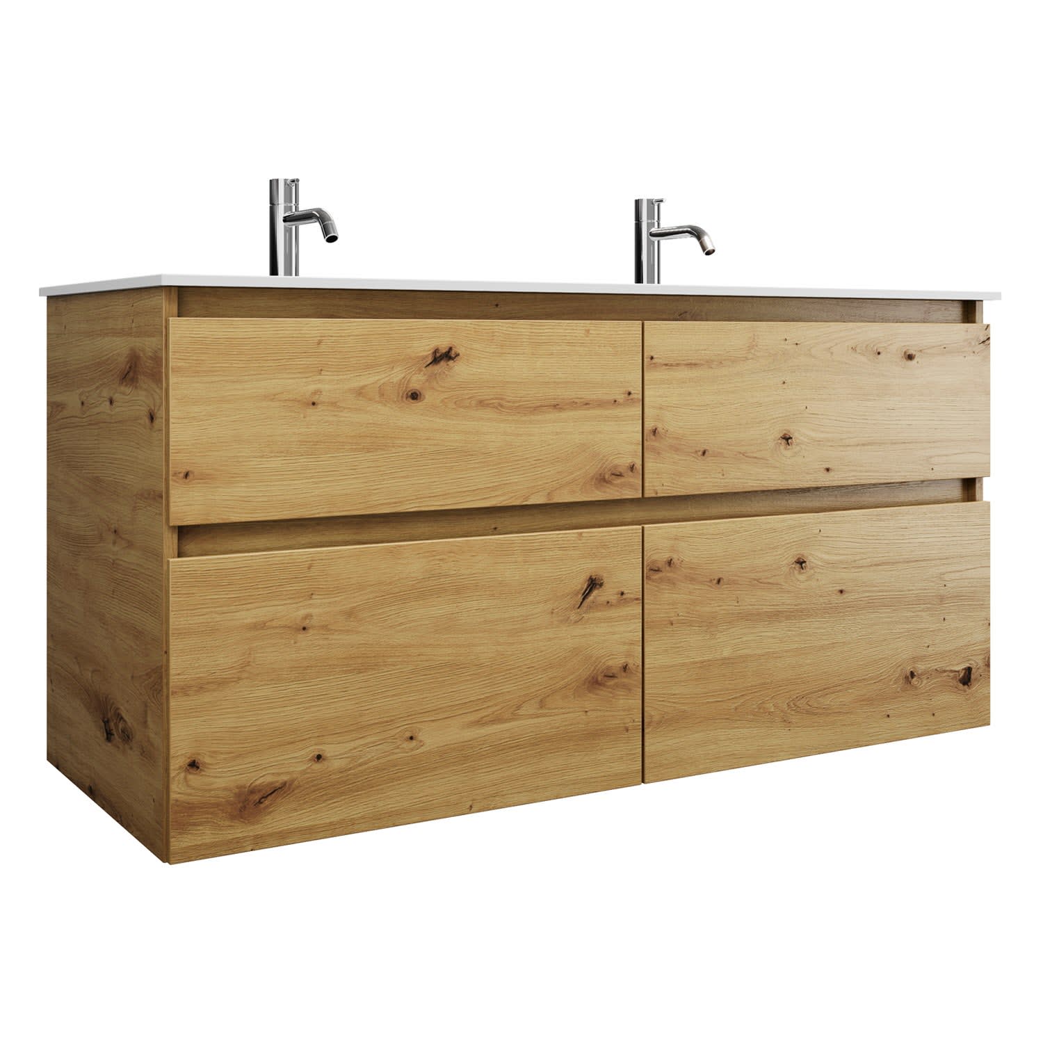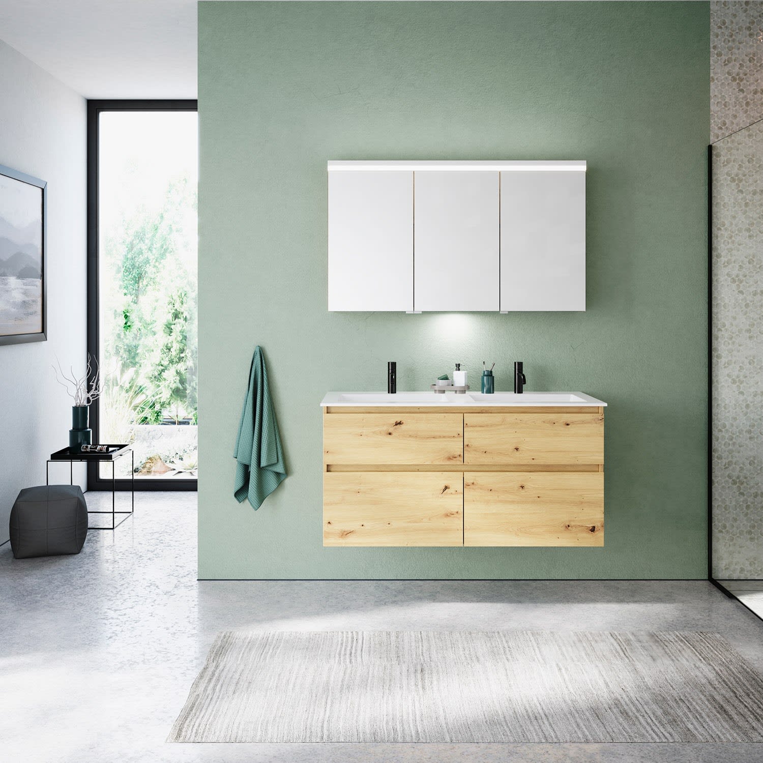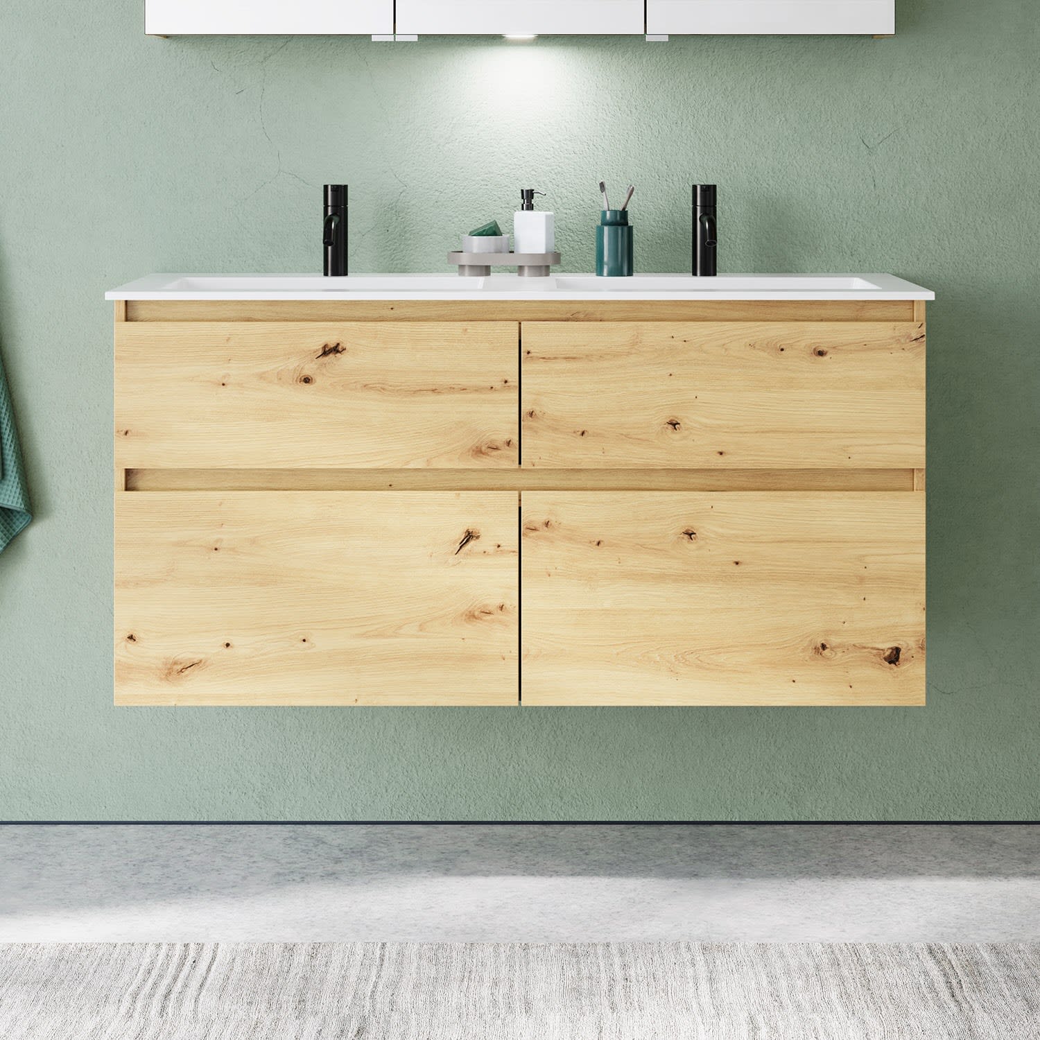burgbad Lin20 Waschtischunterschrank mit Mineralguss-Doppelwaschtisch 122 cm, 4 Auszüge, links und rechts