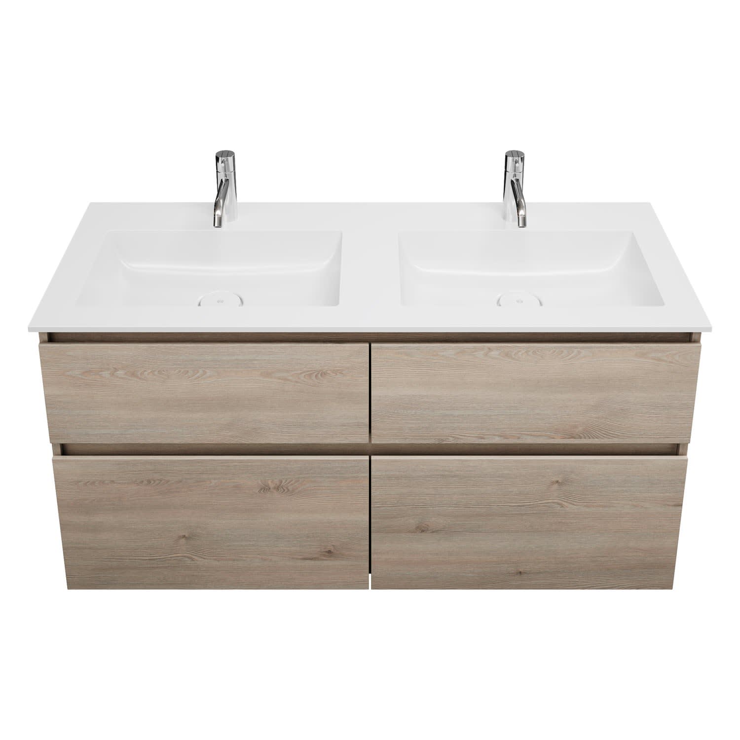 burgbad Lin20 Waschtischunterschrank mit Mineralguss-Doppelwaschtisch 122 cm, 4 Auszüge, links und rechts