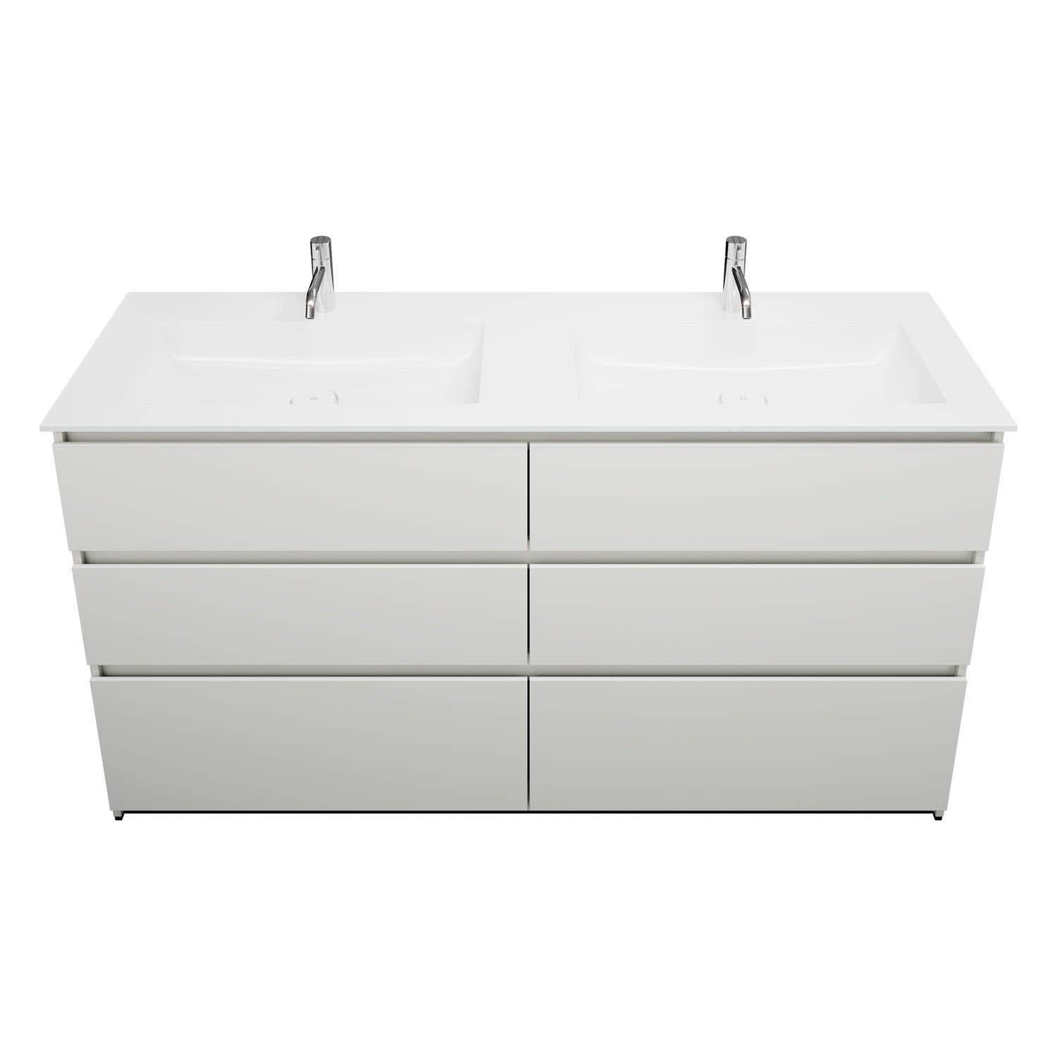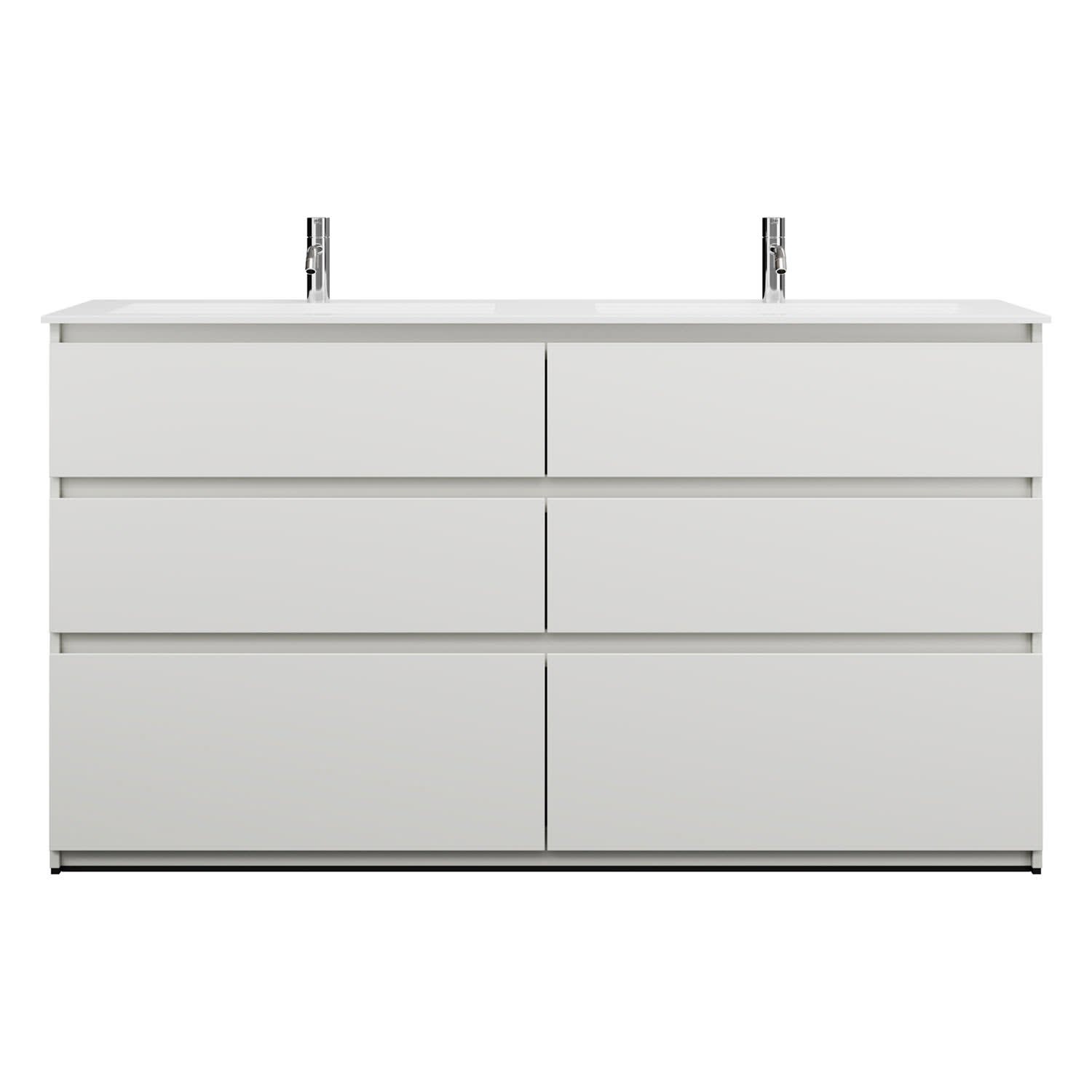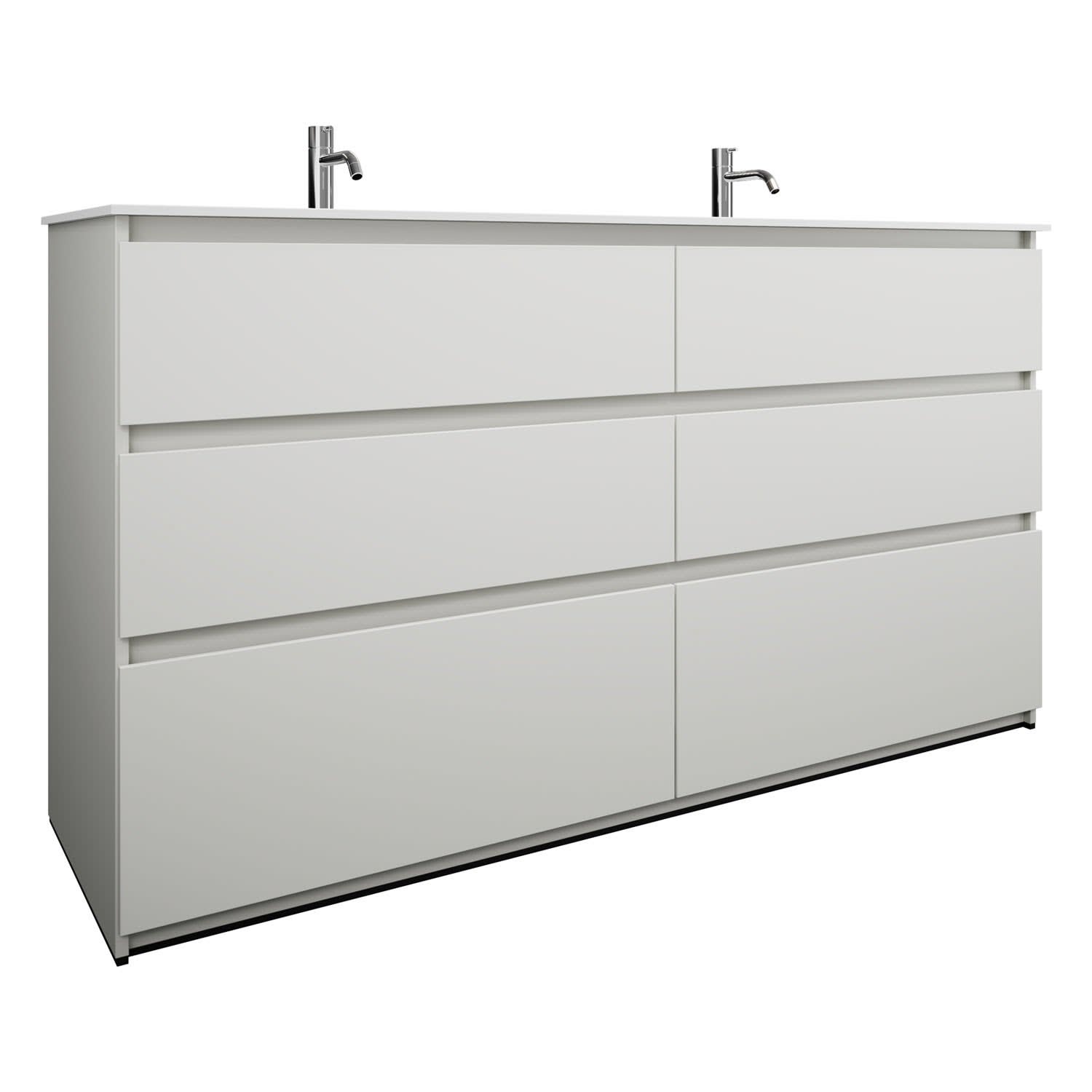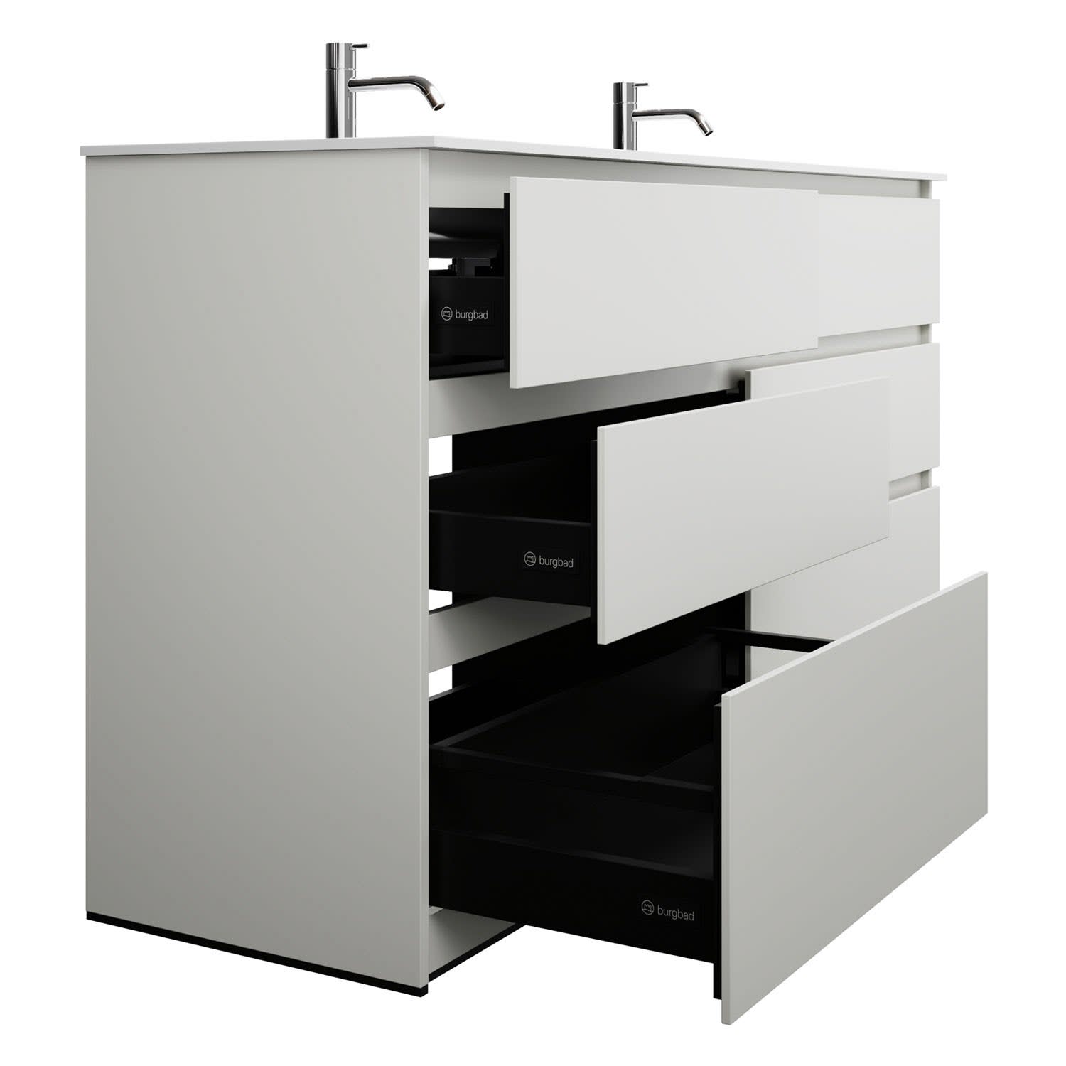 burgbad Lin20 Waschtischunterschrank mit Mineralguss-Doppelwaschtisch 162 cm, 6 Auszüge, links und rechts