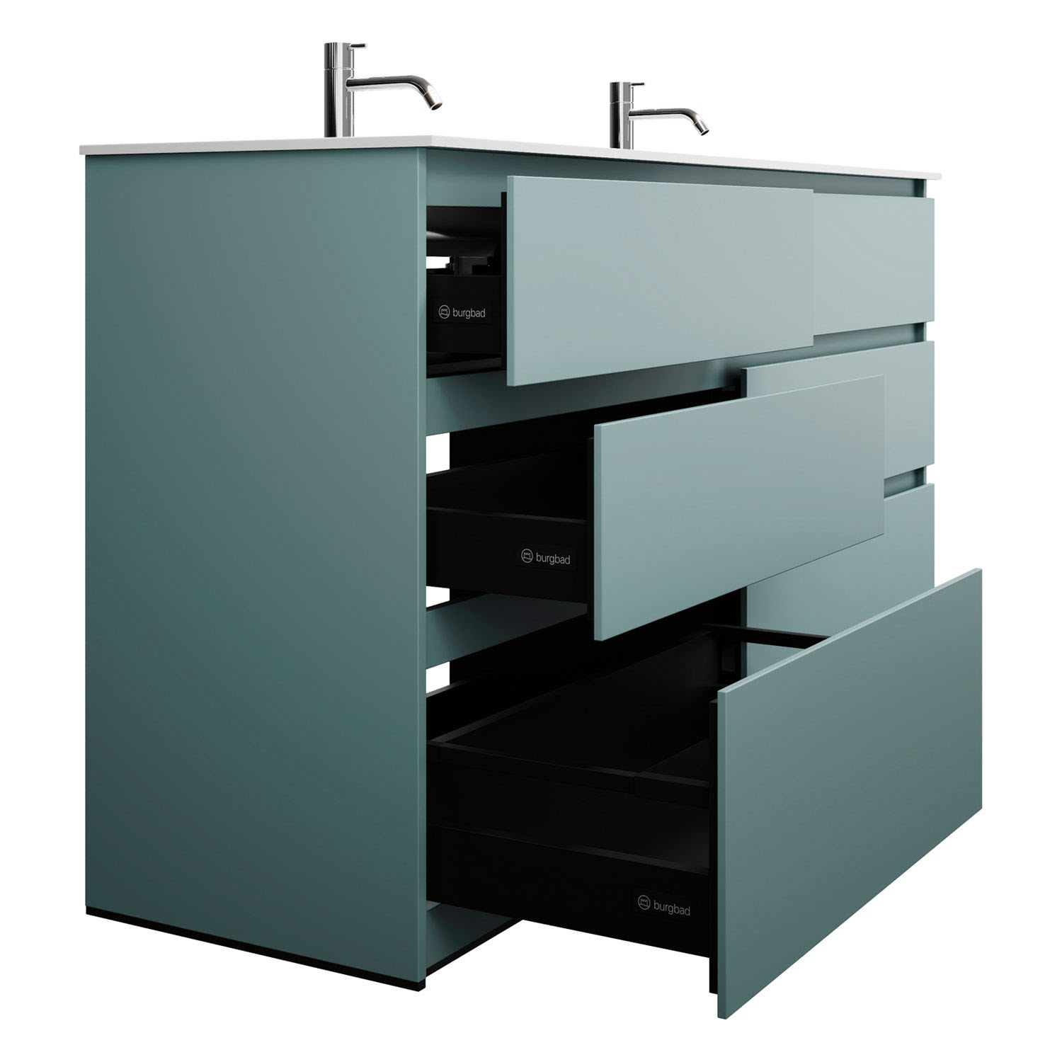 burgbad Lin20 Waschtischunterschrank mit Mineralguss-Doppelwaschtisch 162 cm, 6 Auszüge, links und rechts